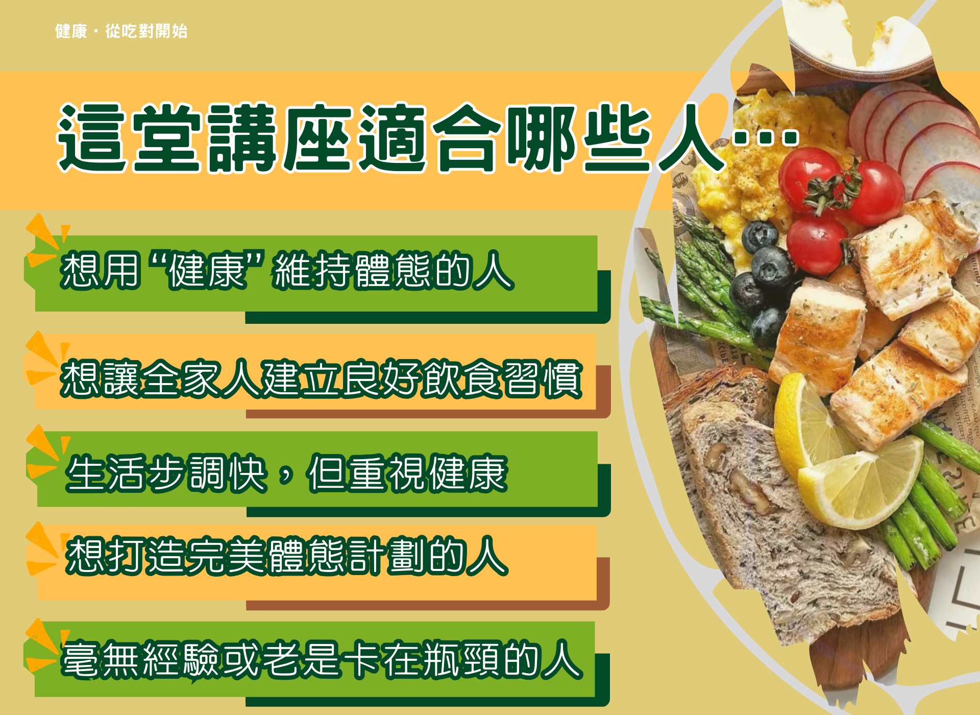 ◆「體重下降」vs「瘦得漂亮」vs「體態精實」這是三件不同的事;愛吃又不想胖;有亞健康問題,這些都可以透過“吃對”來解決。我會用簡單易懂易學的方式,讓你在短短一小時了解什麼是最好的飲食。