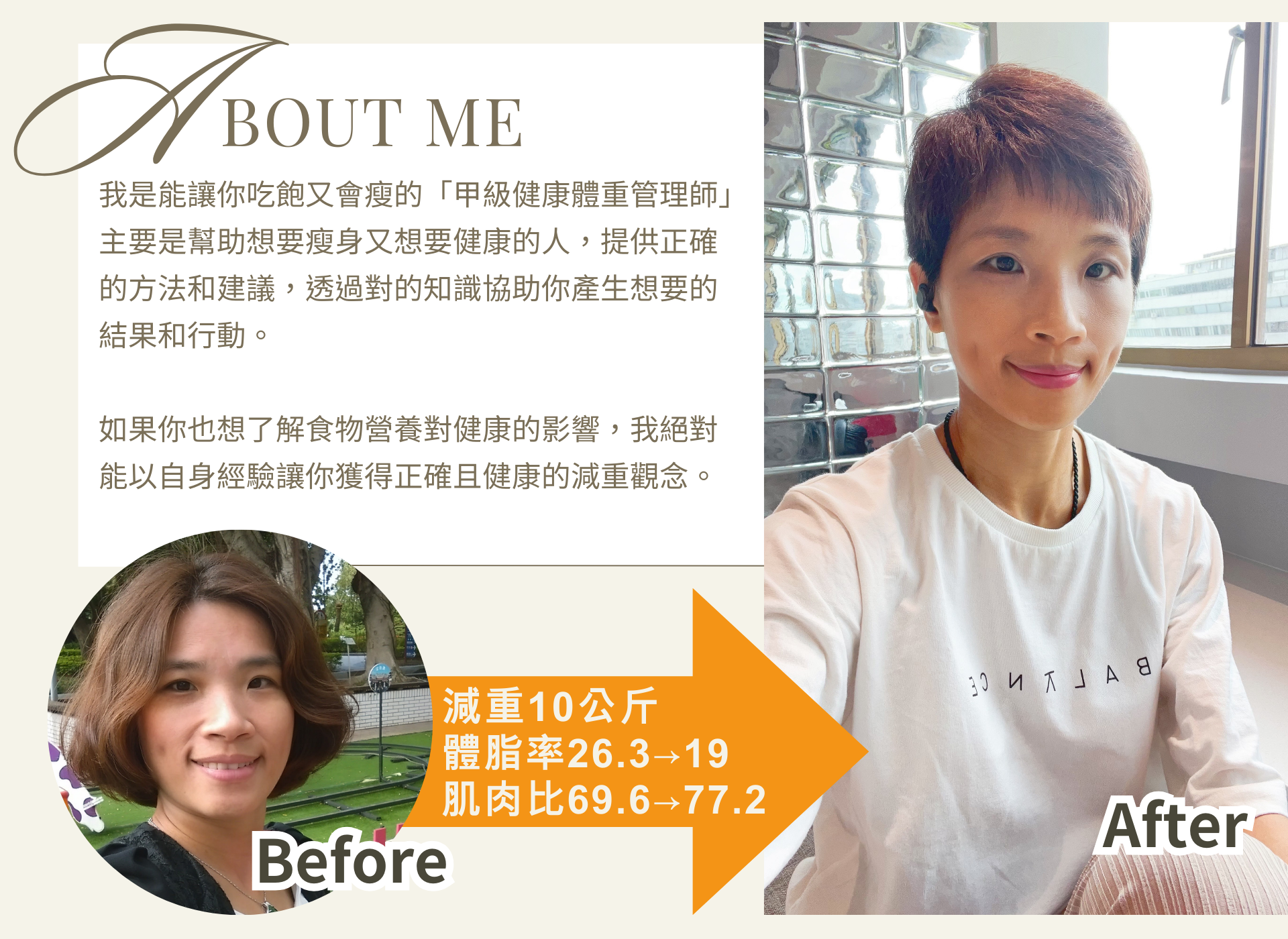 為了讓自己能夠持續健康並且維持理想身材,開始投入大量時間研讀營養相關書籍,並且持續不斷上課、學習,終於讓我找到能夠在不影響身體健康的狀況下,又能夠維持身材的好方法。