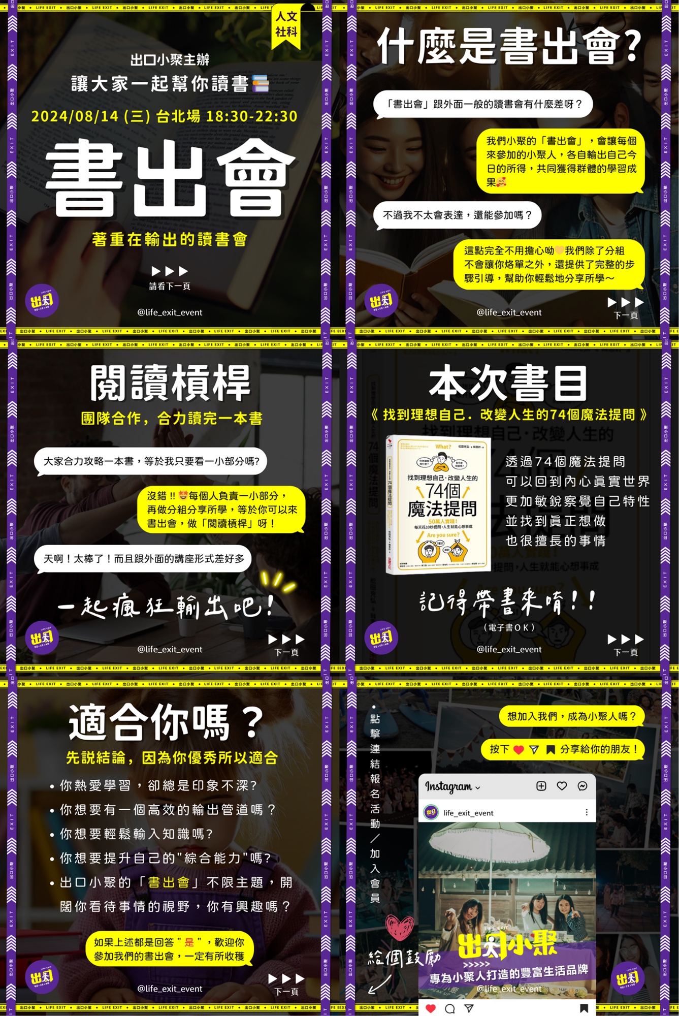 - A:們的書出會重視「輸出」,讓每個參與者都能瘋狂分享和組織所學,從而加深記憶與理解!