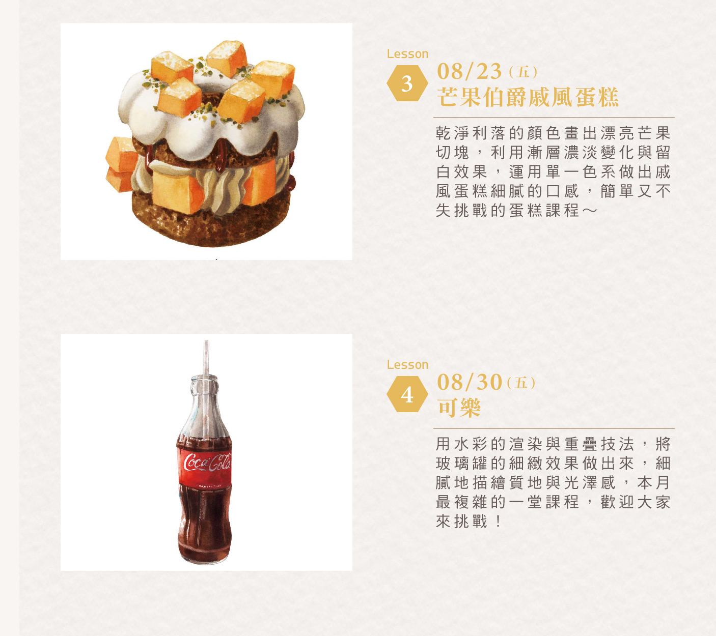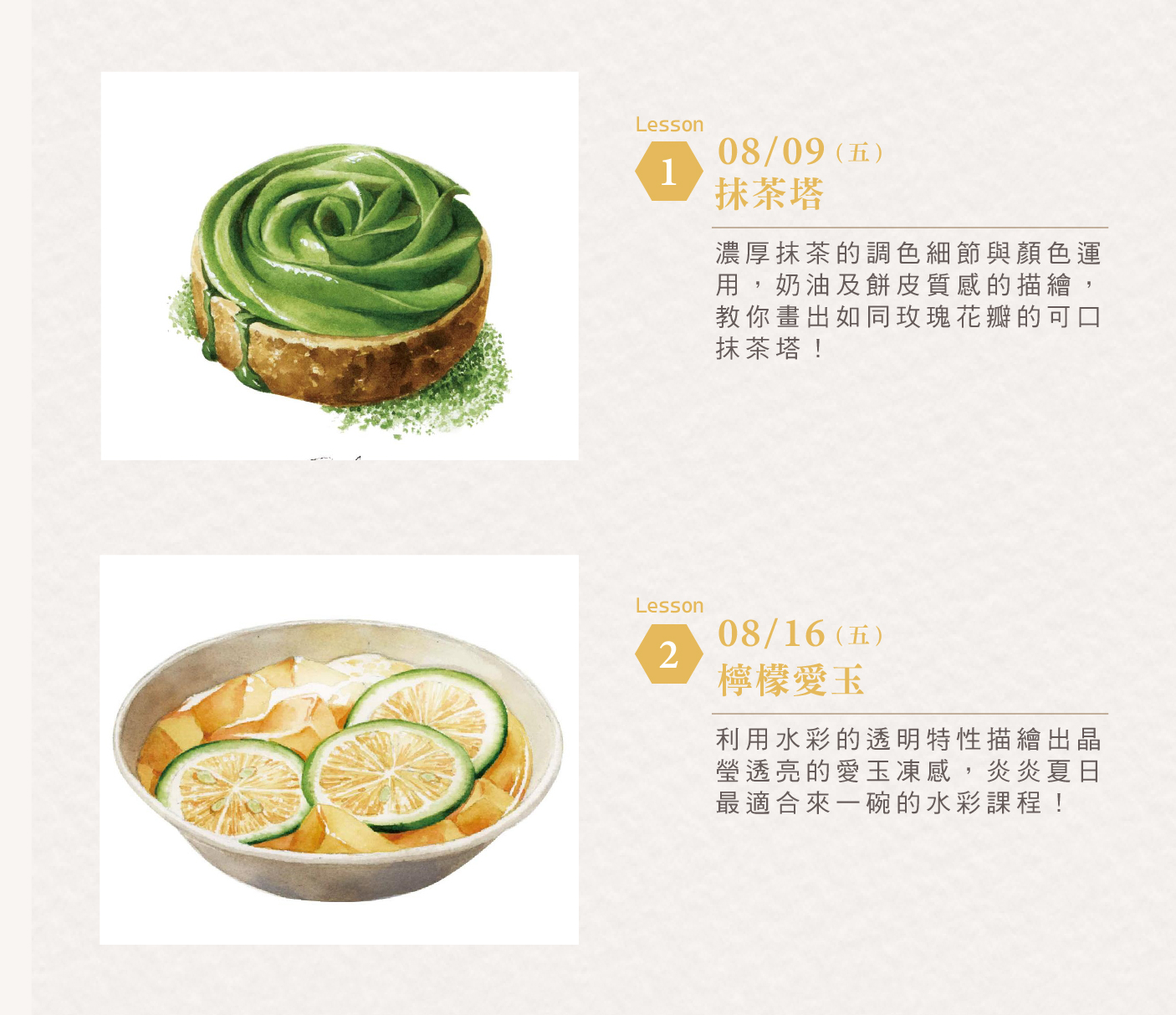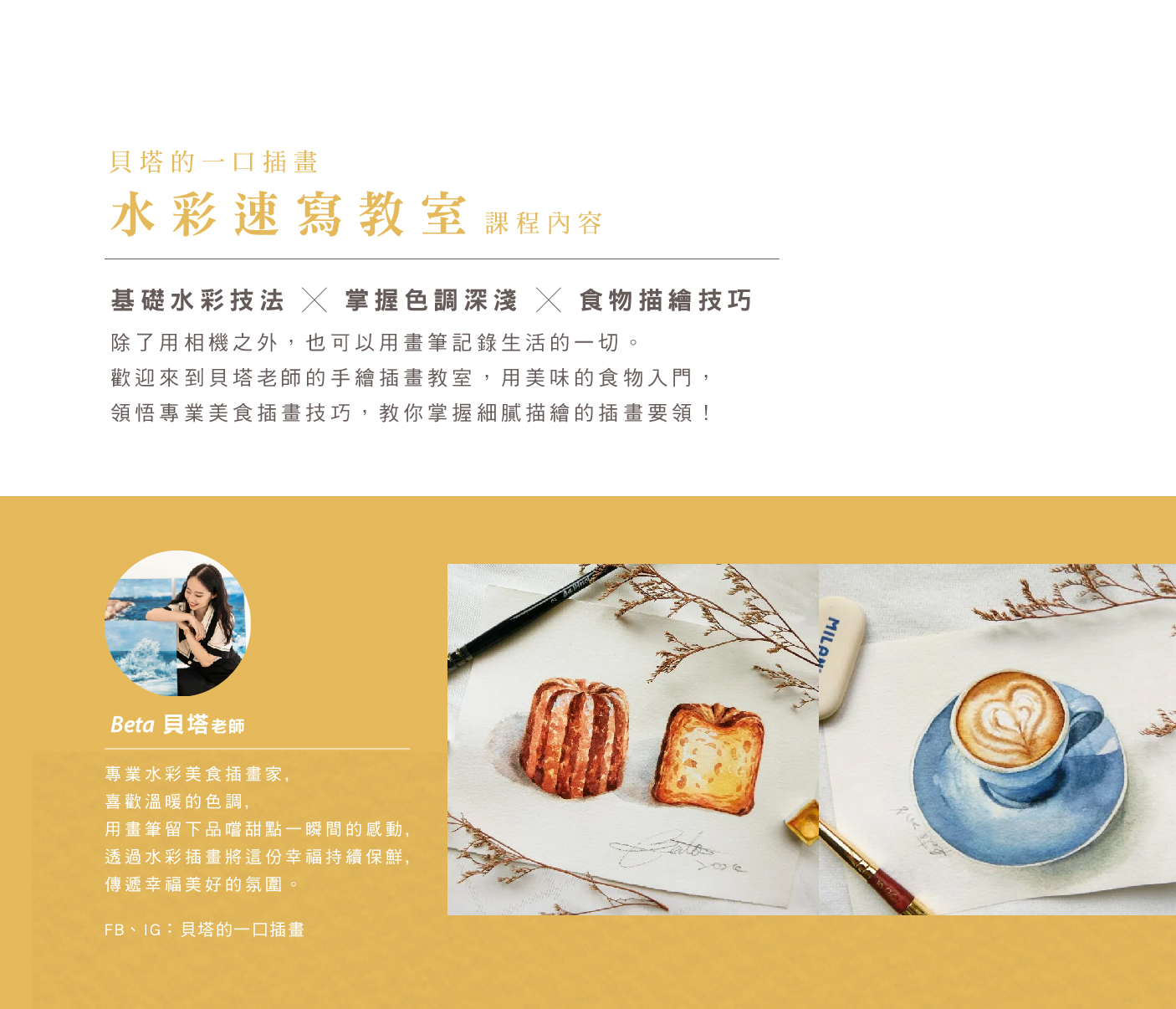 【台中市政店】貝塔的一口插畫-8月水彩速寫教室-飲食盛夏