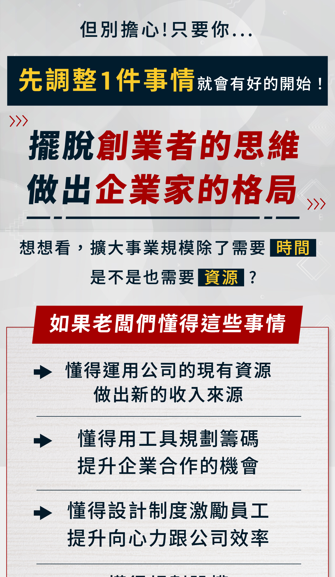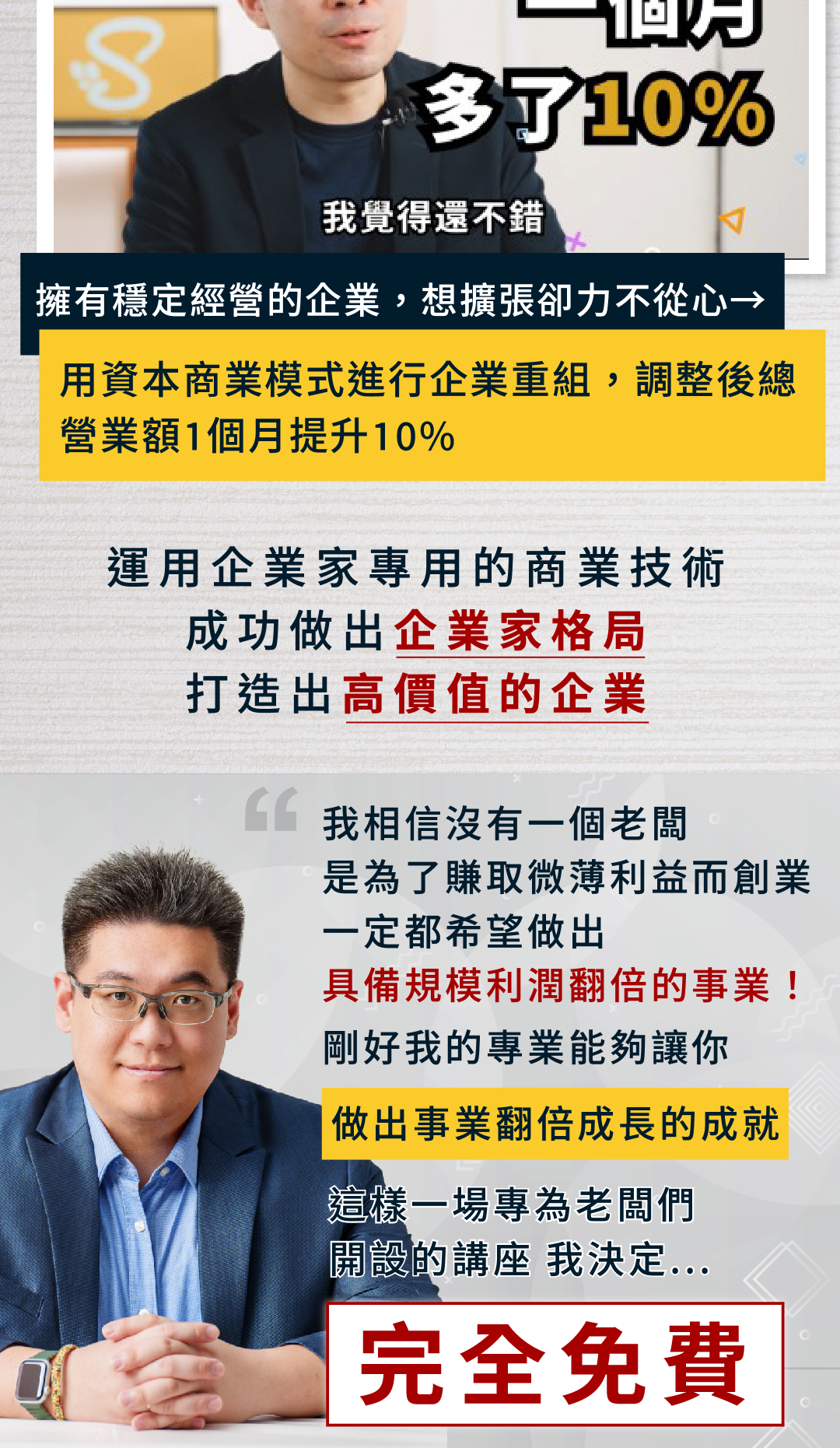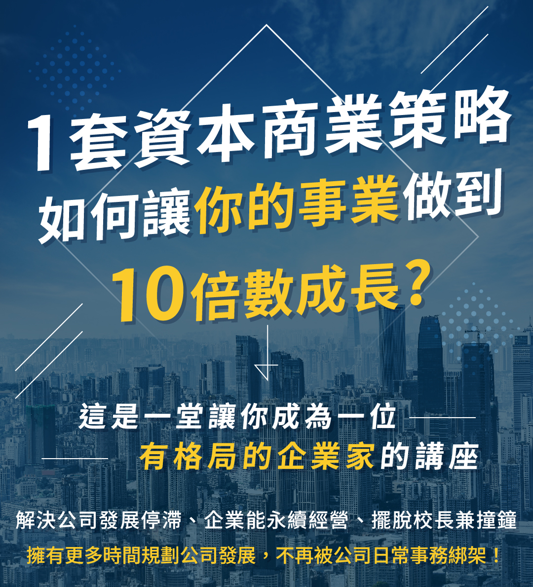 【08/20(二) 線上講座】人才、資源、利潤一次掌握!老闆們都必須要懂的資本策略【企業成長 X 創造利潤 X 0元併購】