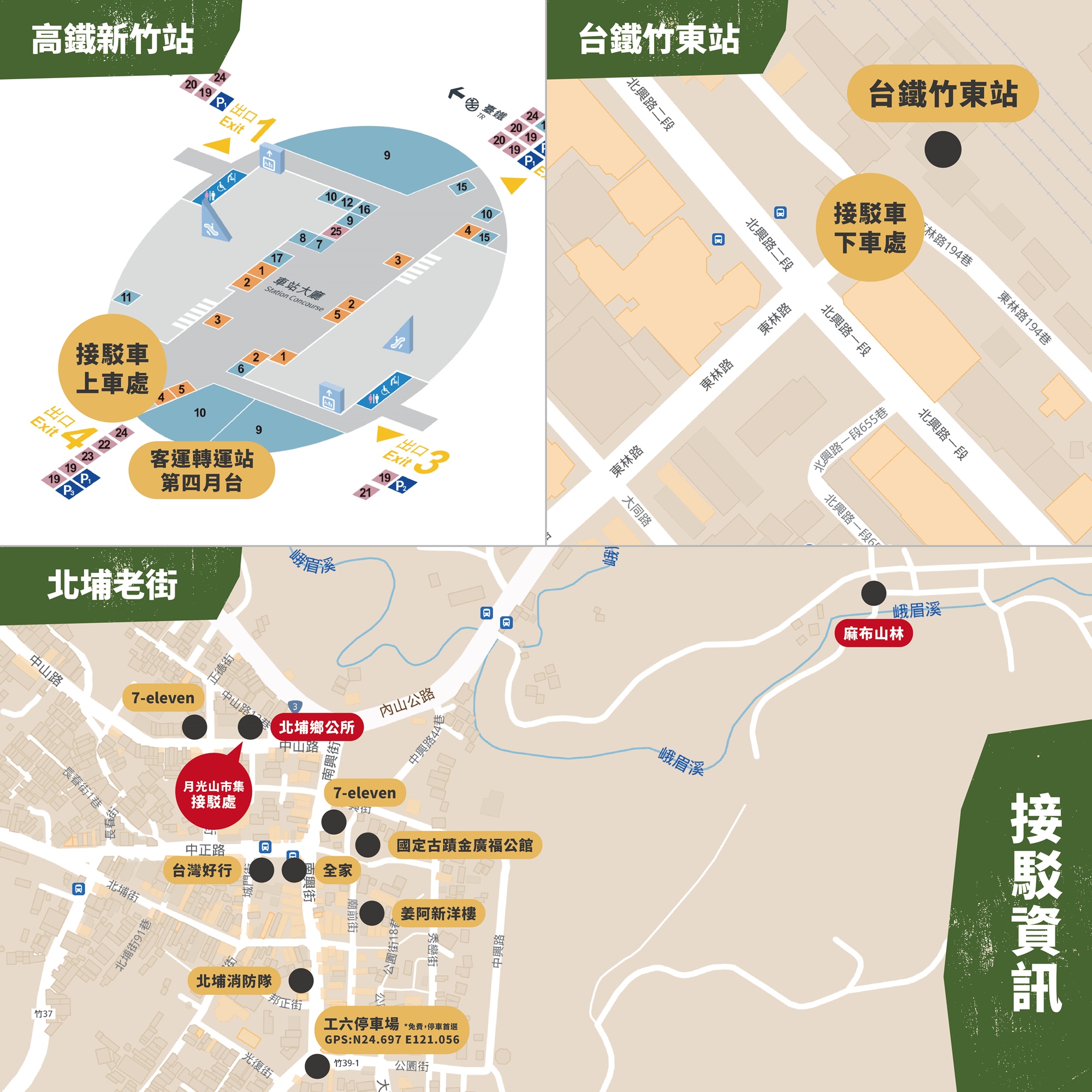 3. 台鐵竹北站下車➜搭乘「台灣好行─獅山線」巴士到北埔老街➜步行 10-15 分鐘到麻布山林。