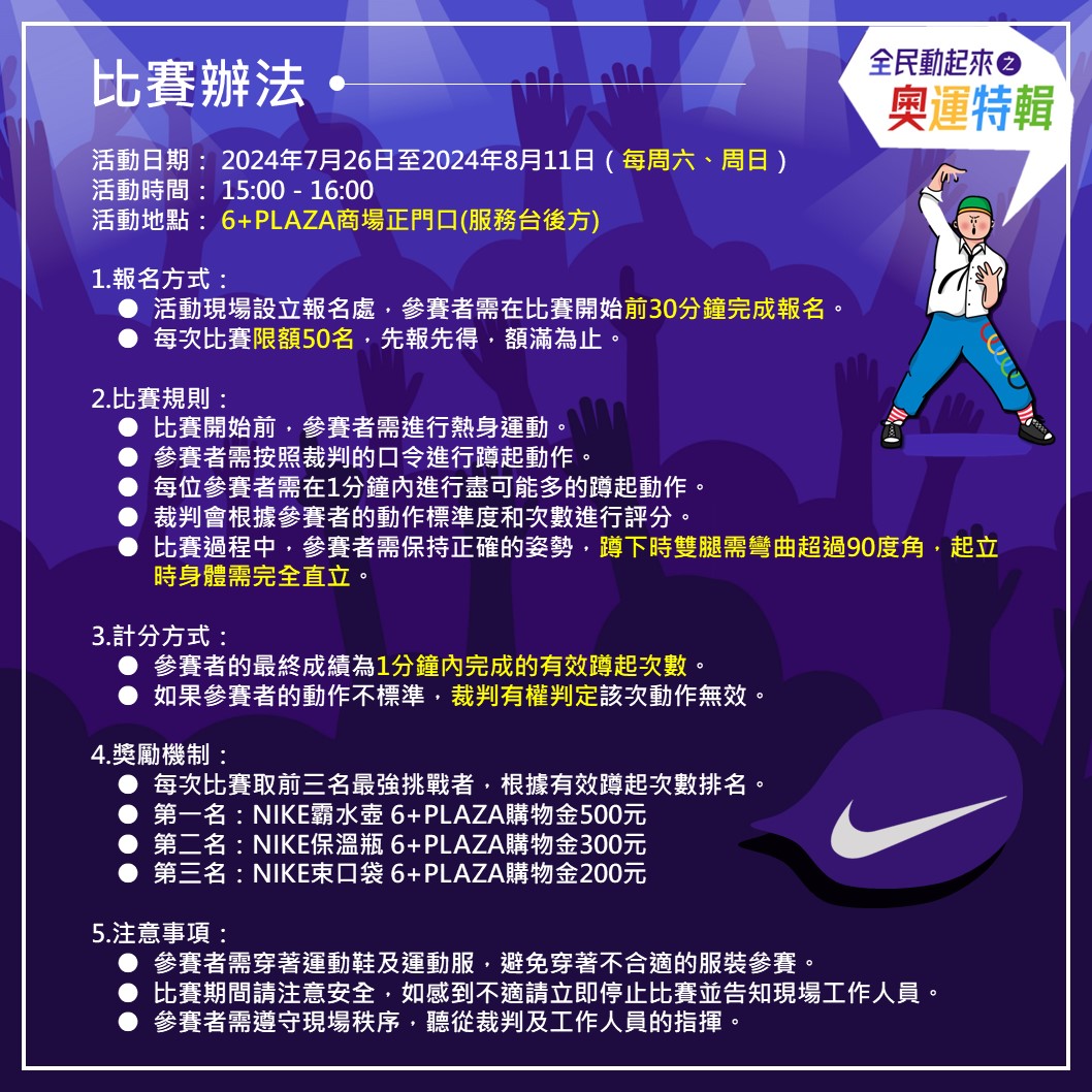 每場次第一名:NIKE霸水壺+6+PLAZA 500元折抵券