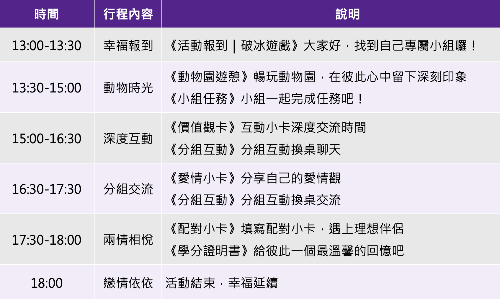透過專業主持人帶領以及互動遊戲小卡,在輕鬆有趣的互動中,認識和你一樣優質的朋友。