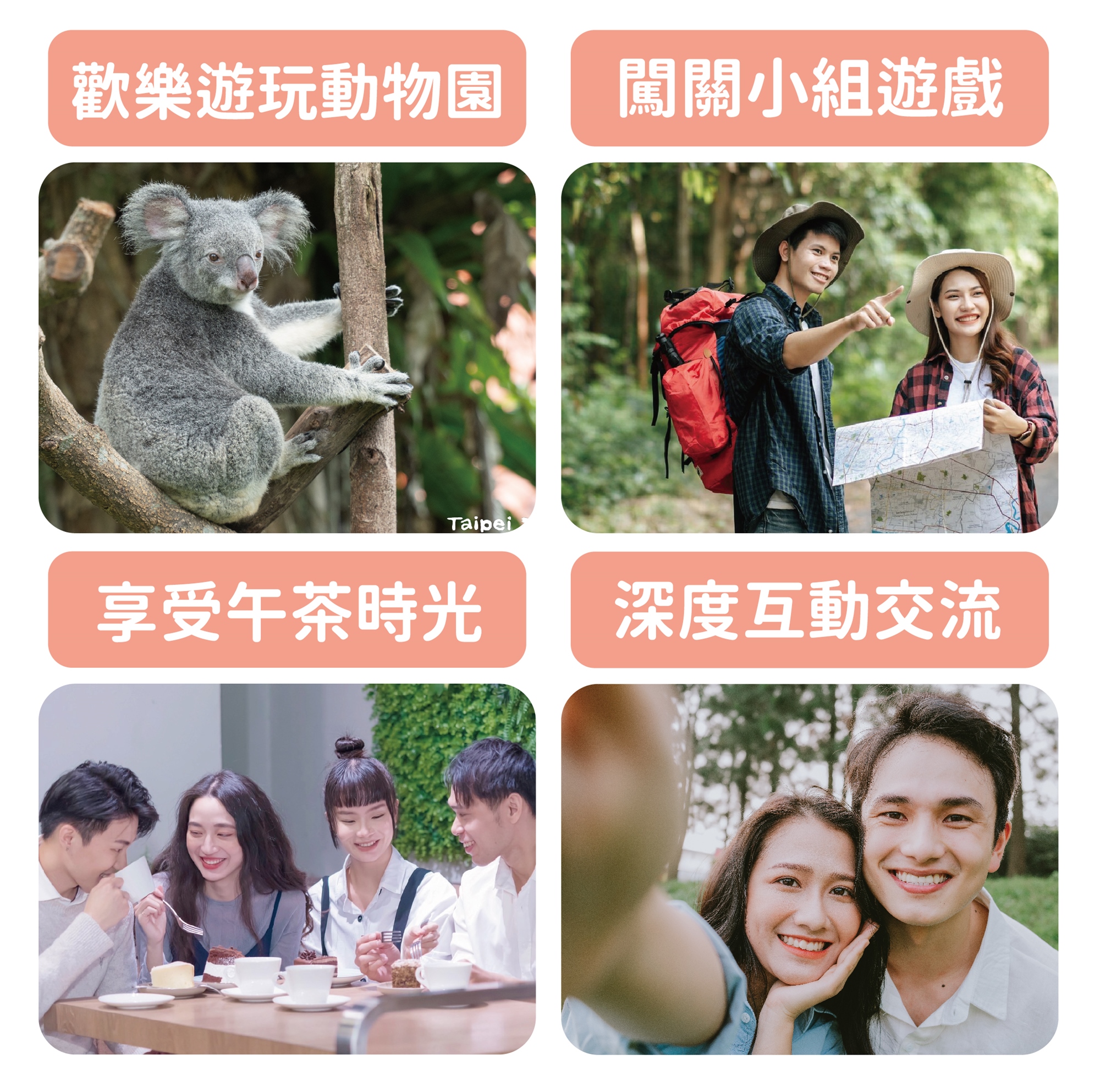 動物園110歲生日快樂!參加者分成小組一起完成闖關任務吧!小組間互動、合作一同解謎闖關,大猩猩在哪裡!?你有看到亞洲象嗎?無尾熊在這!在歡樂氣氛中邂逅心動對象。