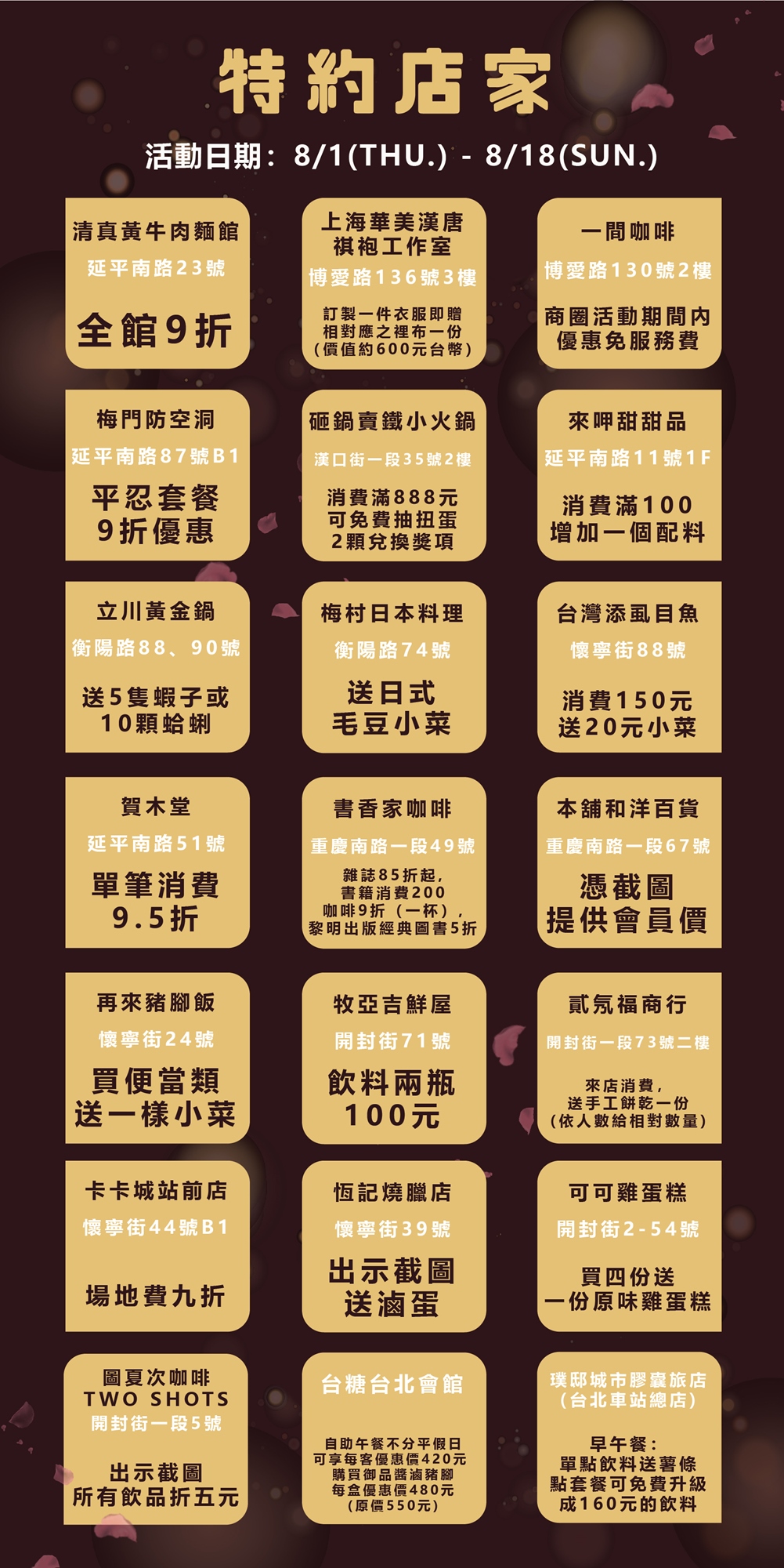 優惠規則|於期間內至商圈指定店家消費,出示本活動頁面即可獲得店家優惠,優惠內容依店家公布為準