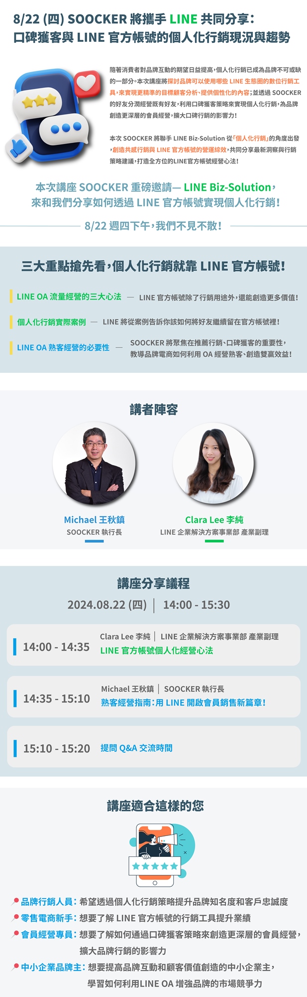 免費電商講座|個人化行銷再升級—你所不知道的 LINE OA銷售心法!LINE數位行銷工具 x 口碑獲客