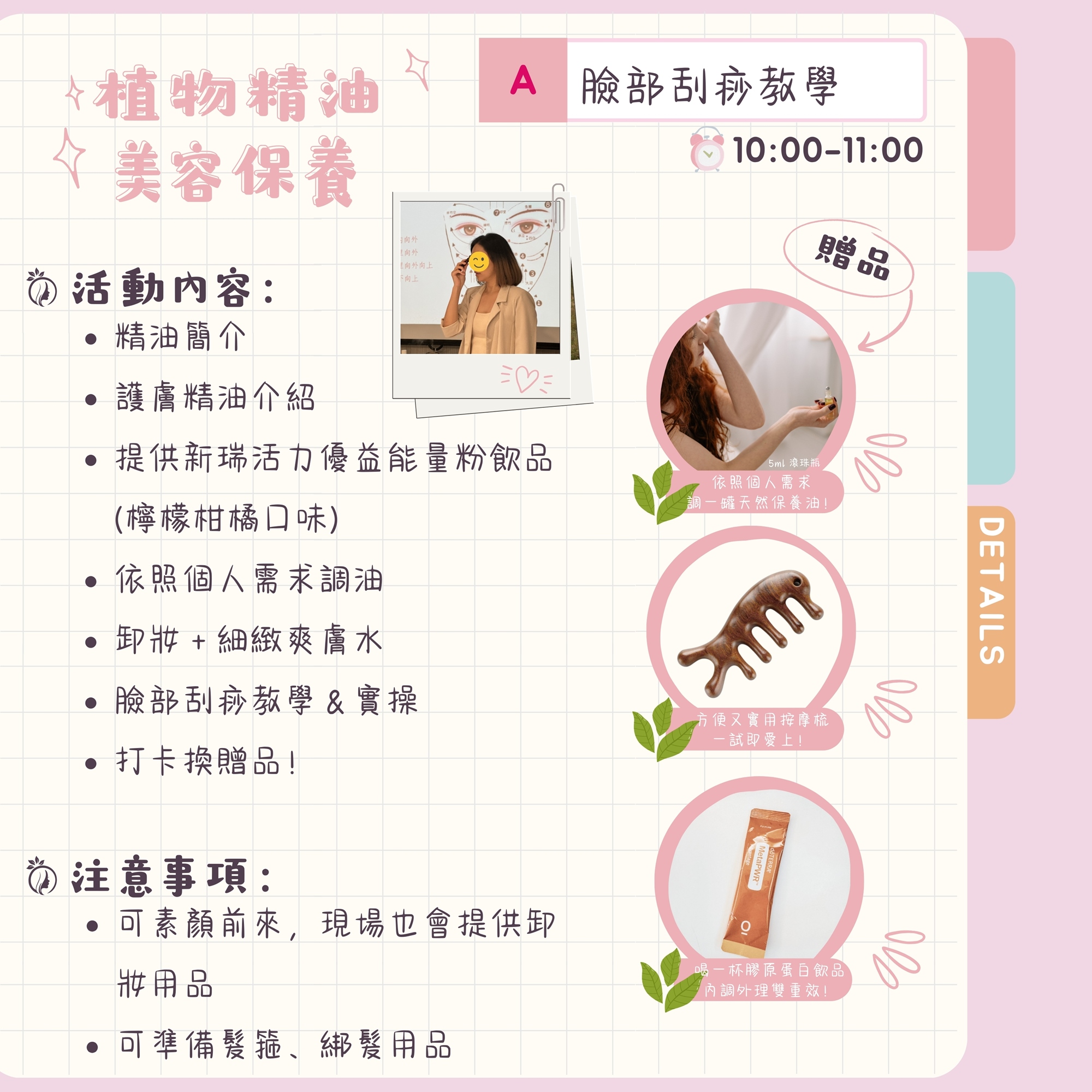 ⇨ 透過按摩梳搭配天然精油刮痧臉部,有助改善膚況,加上精油效用大大加倍。