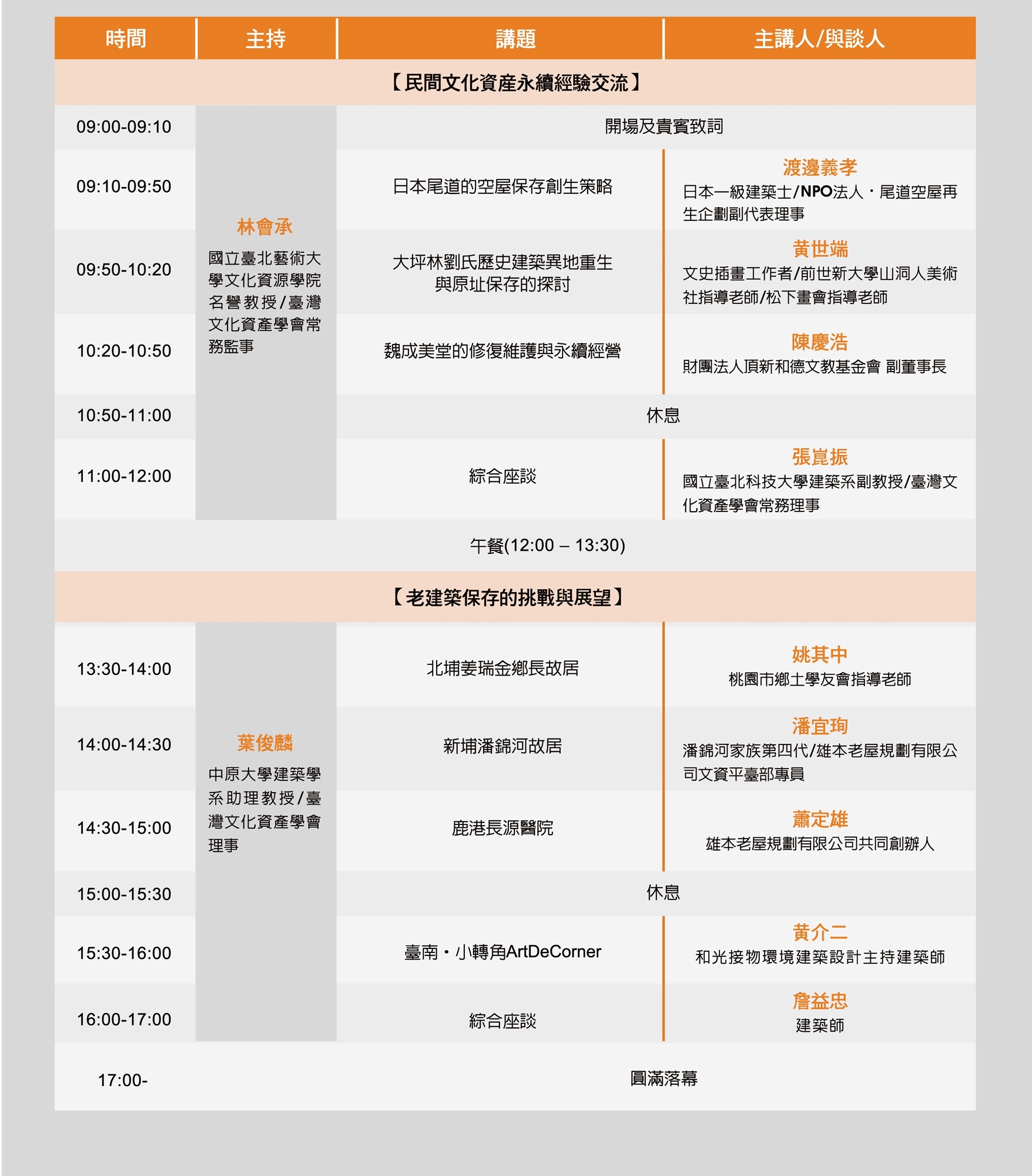 - 林會承 國立臺北藝術大學文化資源學院名譽教授/臺灣文化資產學會常務監事