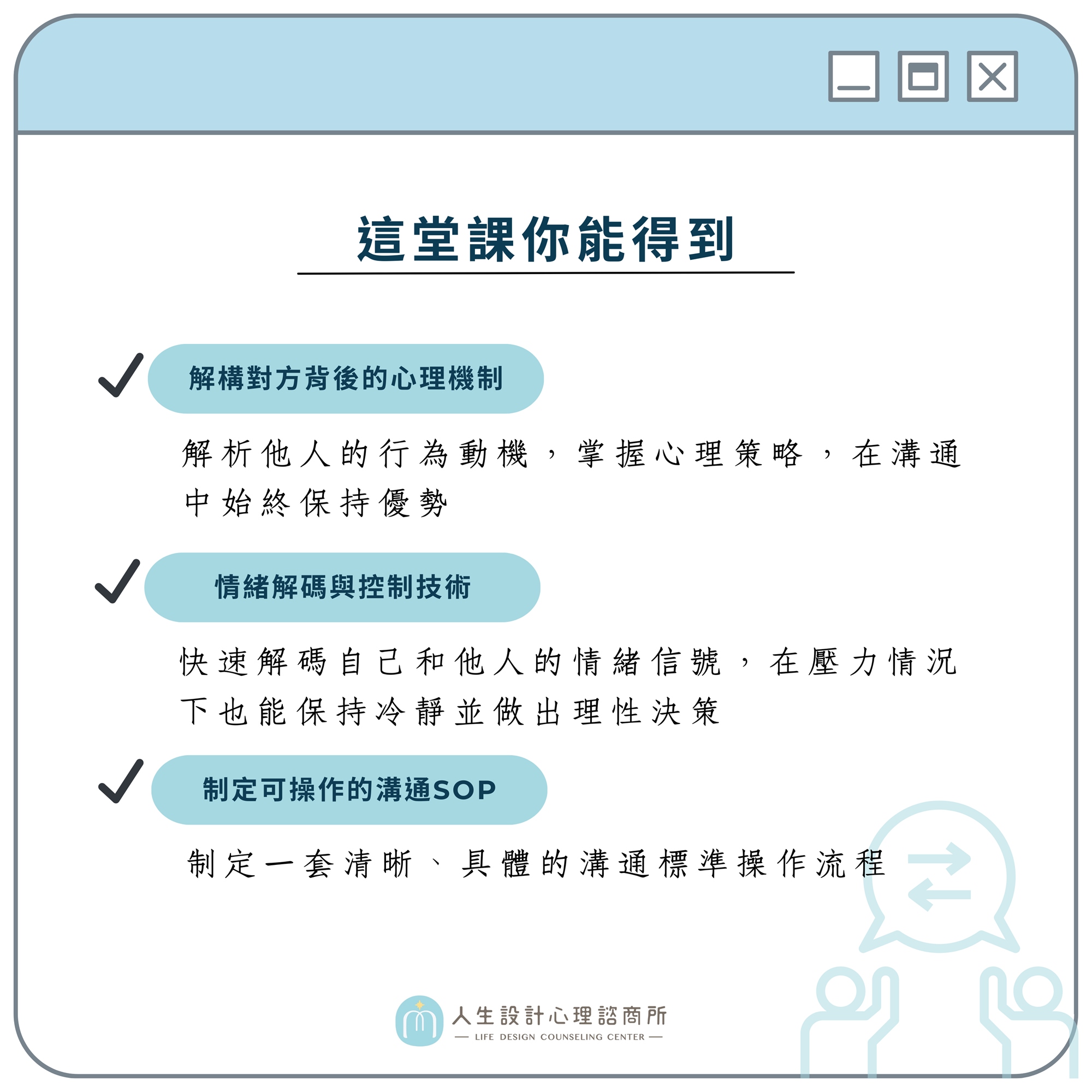 ▪️希望改善職場溝通技巧,提升工作效率、減少人際衝突的人