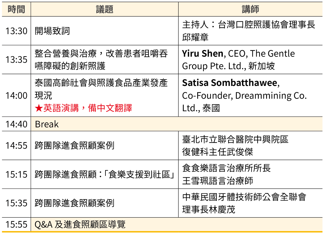 參加對象│醫療保健專業人士、照護食品產品的食品服務提供者和製造商、長期照顧服務單位、學界研究人員、政策制定者與政府官員、照顧者和家屬