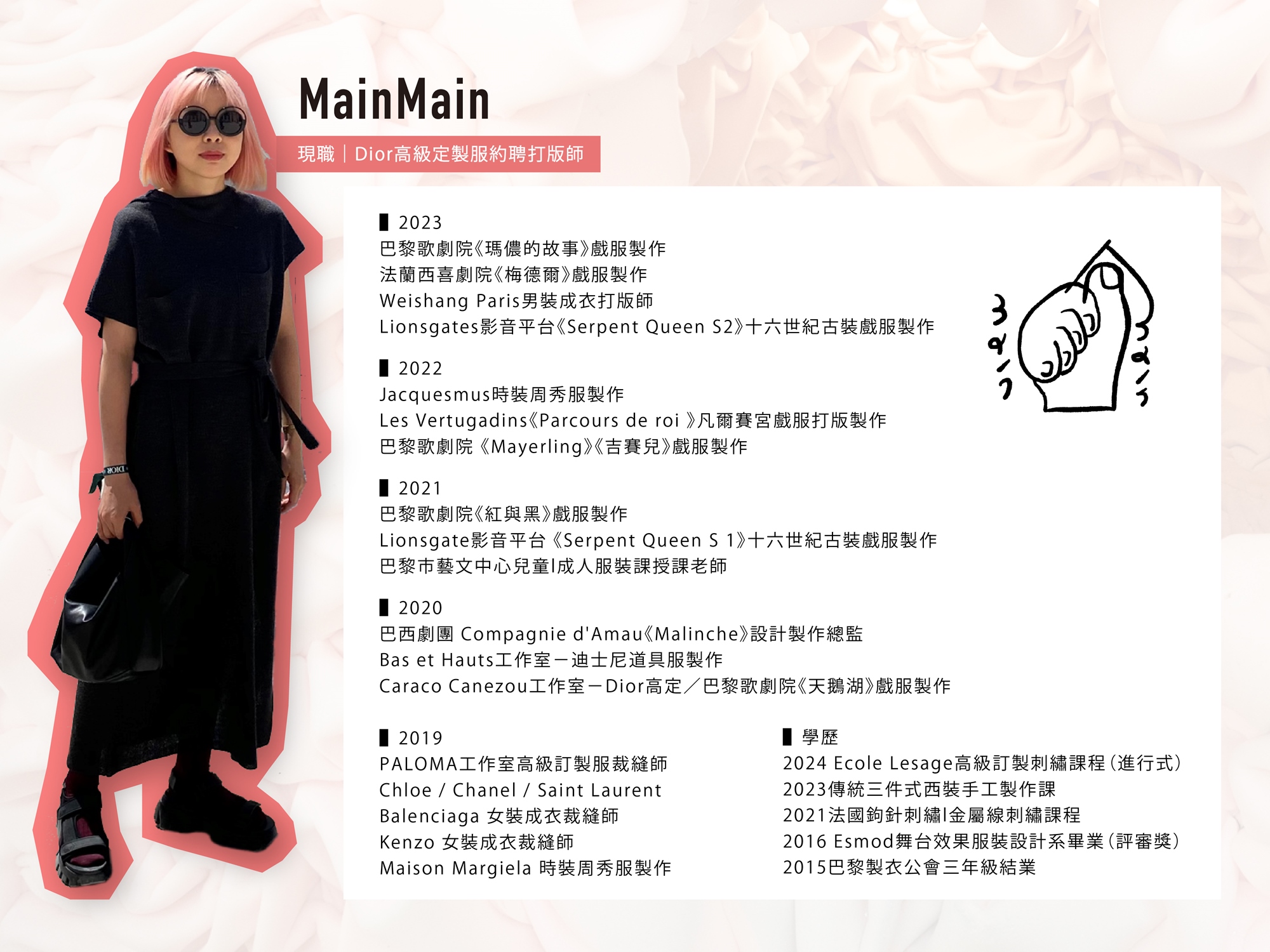 ▥ 講師|MainMain,現職 Dior 高級訂製服打版師