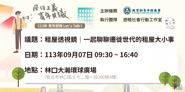 期待在 9月7日 與您一起探討租屋大小事,攜手實現居住正義的理想!