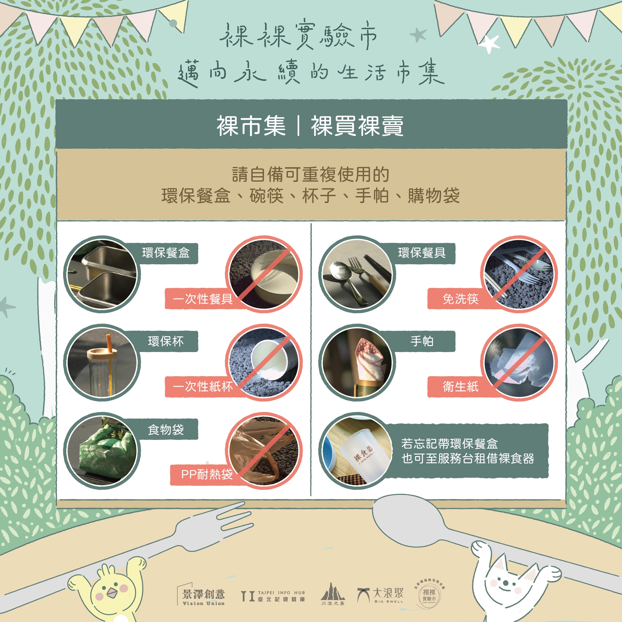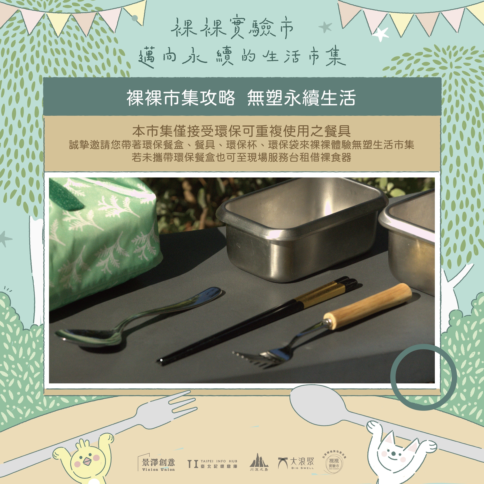 ▶️ #市集僅接受環保可重複使用之容器,現場提供 #裸食器 循環容器租借使用 🌿