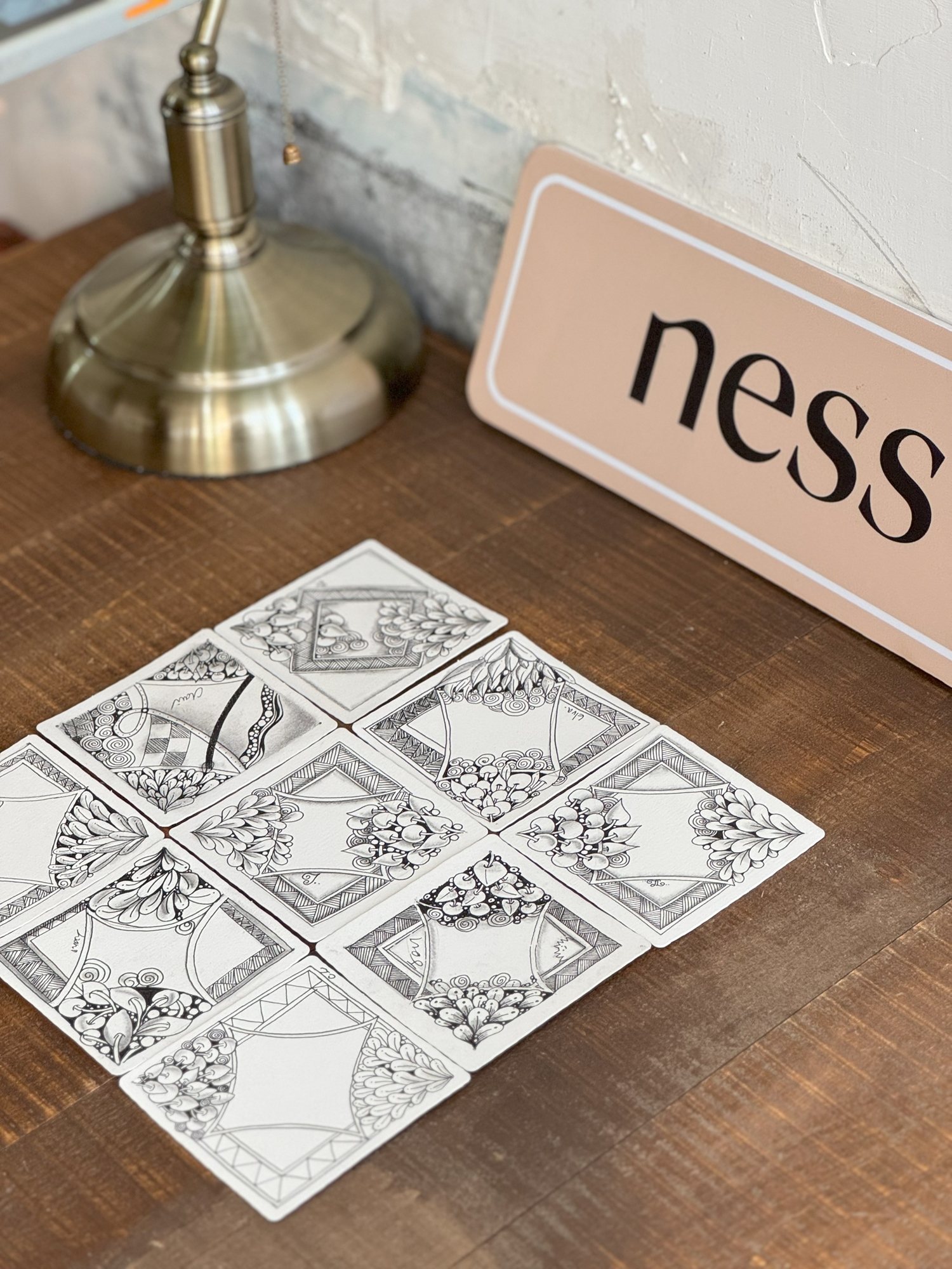 Jenny會引導大家將複雜的圖樣拆解,在紙磚上創作自己的禪繞作品。一次一筆畫,沒有不可能的事,禪繞如此,人生也是如此!