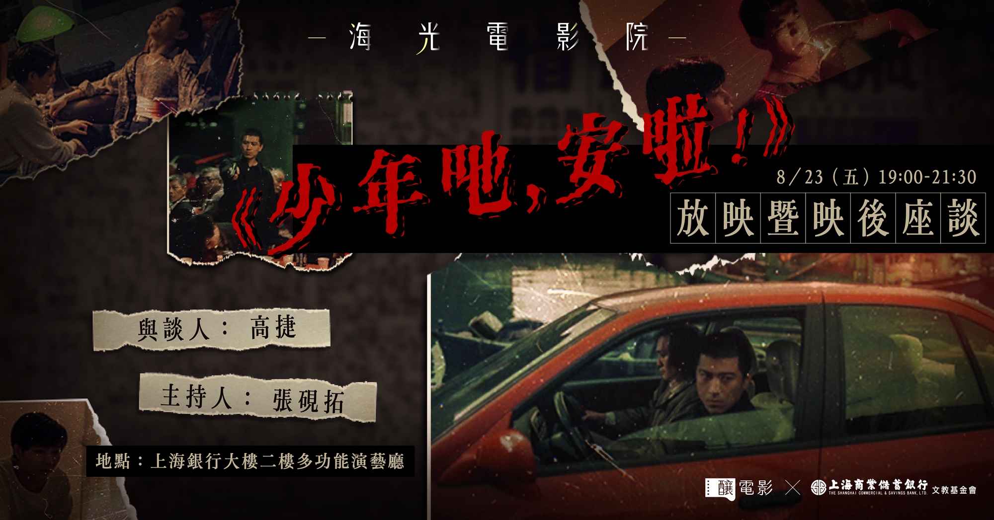 海光電影院八月場——2022 年完成數位修復的台灣黑幫經典電影《少年吔,安啦!》,此作深刻地捕捉了九〇年代的台灣都市色彩,角色的血氣方剛與自由不羈,都在台灣電影史上留下重要印痕。如今經過全新的修復、調光和聲音設計,觀眾終於有幸一睹這部神奇之作的原貌,映後座談釀電影更邀請資深演員高捷一同參與,為觀眾帶來跨越時空的收穫。
