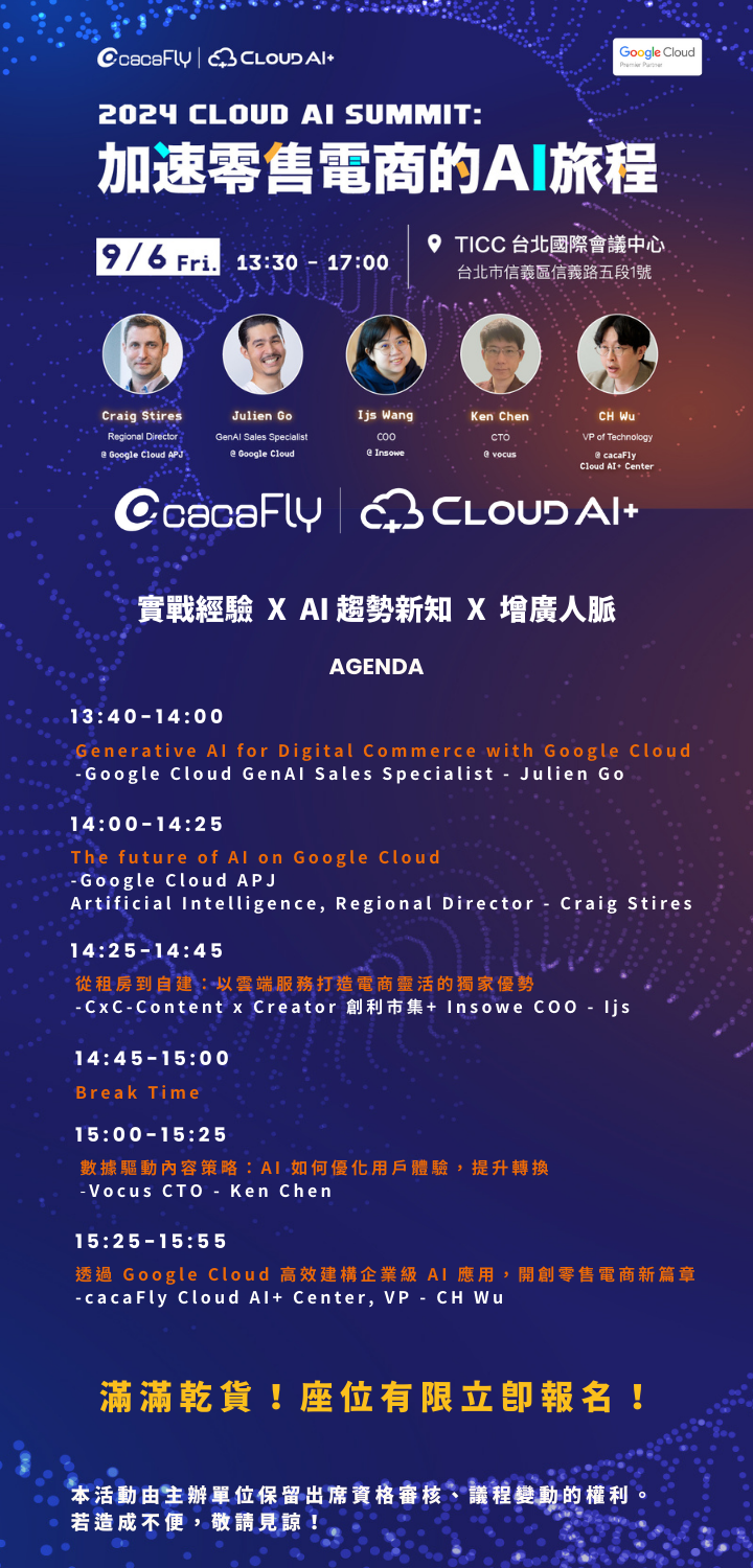 我們邀請到零售電商產業的權威專家,解析最新 AI 趨勢與獨到觀點、數據治理和清理的寶貴經驗。立即報名,了解如何透過數據治理和生成式 AI 驅動業務增長,創造更多價值,打造高效的人機協作團隊,優化產業佈局,拓展成長曲線。