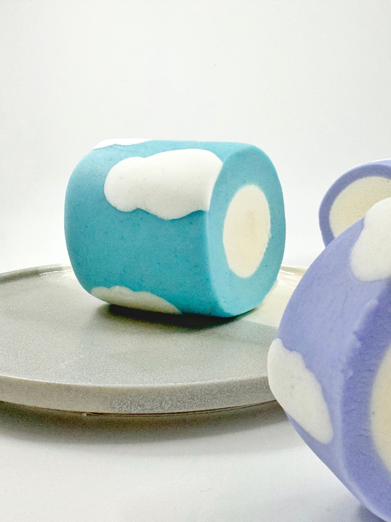 在這場夢幻的泡泡浴中,仿佛置身藍色天空與白色雲朵之中,享受生乳捲造型的泡泡沐浴🛁