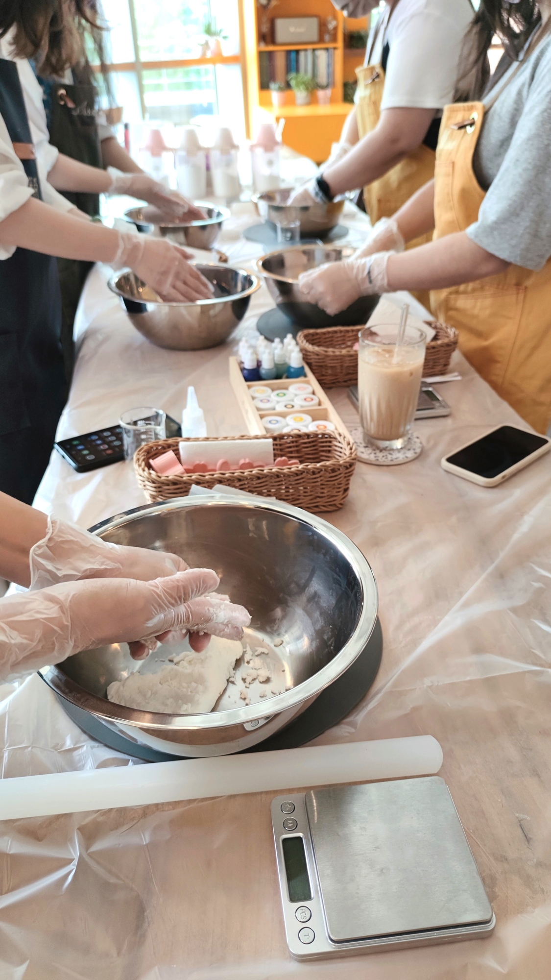 課程包括天然芳療精油介紹、調香與材料講解、雲朵造型製作,以及生乳捲製作教學~