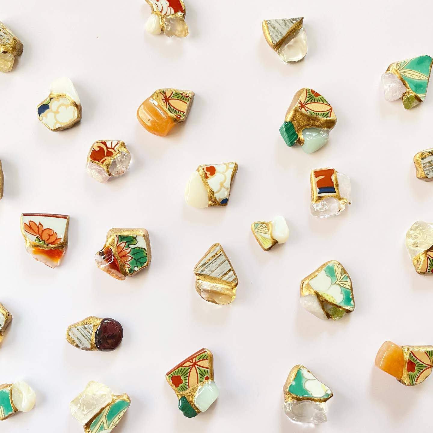 這是一個體驗製作金繕SDGs飾品的活動,您可以自由地將傳統的日本陶瓷碎片和色彩鮮豔的天然石頭組合起來。課程中將提供來自有田燒和織部燒等破損或缺損的陶瓷器物,您可以選擇自己喜歡的配對,並與色彩斑斕的天然石頭搭配,施以「金繕」,製作出「獨一無二的金繕珠寶」!