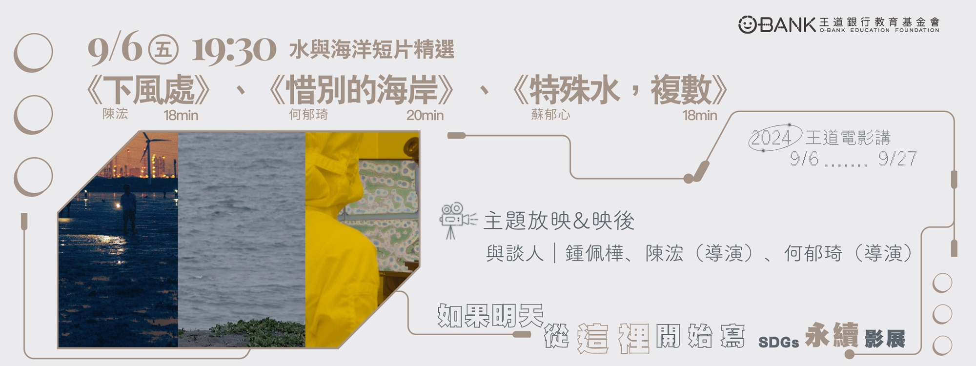 2024年王道銀行電影系列將以SDGs為核心,精選能源、海洋及永續城鄉、性別平權等目標主題,透過影像探索與反思,當我們立足21世紀,回頭檢視人類歷史與世界互動的足跡後,該如何提筆,寫下明天以後的漫漫長路。