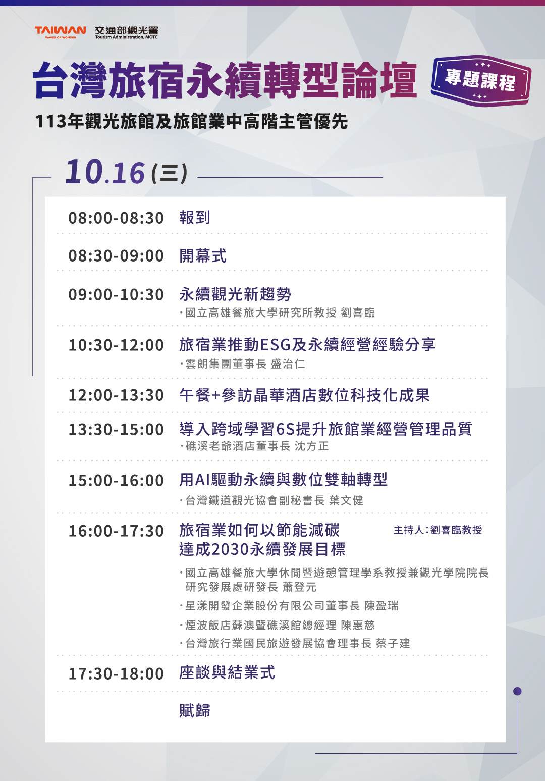 113年觀光旅館及旅館業中階經理人訓練~專題課程