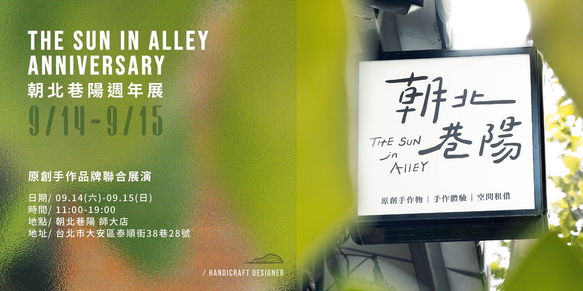 職人們經營著品牌的同時也是展現品牌獨樹一幟的靈魂,朝北巷陽希望創作者都能綻放那份獨特,在這場週年展,能看到的,是品牌完全沒有展示過的作品,能感受到的,是現場製作專屬創作品的那份感動,以及朝北巷陽即將推出與職人聯名系列周邊,一起來慶祝喜愛手作文創的朝北巷陽一週年快樂🎉