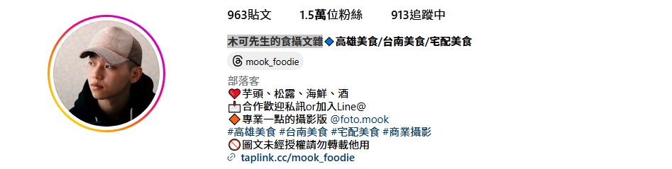 木可先生起取自姓氏柯,攝影為自學,以拍攝食品為主,主要工作範圍在高雄與台南。2018年起經營個人部落格與Instagram帳號,2020年開始接商業攝影工作至今。