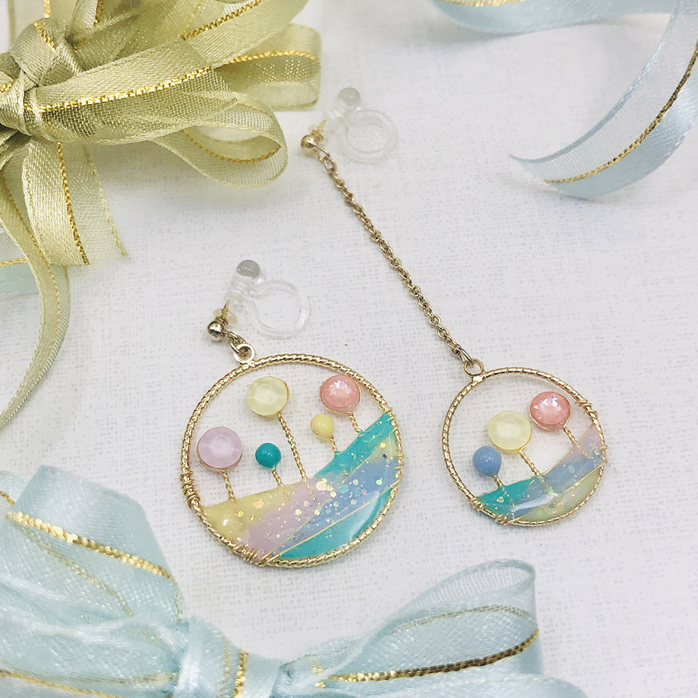 愛手創國際手作設計節-白日夢聚樂部//EmilyQ X 二人一日 - 繁花若夢《春》UV纏繞不對稱耳環