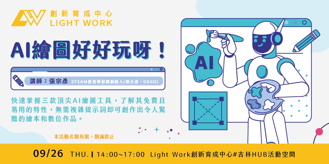 🔸活動地點:𝐋𝐢𝐠𝐡𝐭 𝐖𝐨𝐫𝐤 #吉林Hub (台北市中山區民權東路二段46號3樓之2)