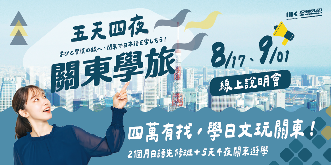 歡迎參加「MK反轉外語」關東遊學說明會!我們將詳細介紹關東遊學的課程內容,以及飛往日本關東五天四夜的行程安排、景點特色及相關資訊,讓您對此遊學行程有全面的了解。