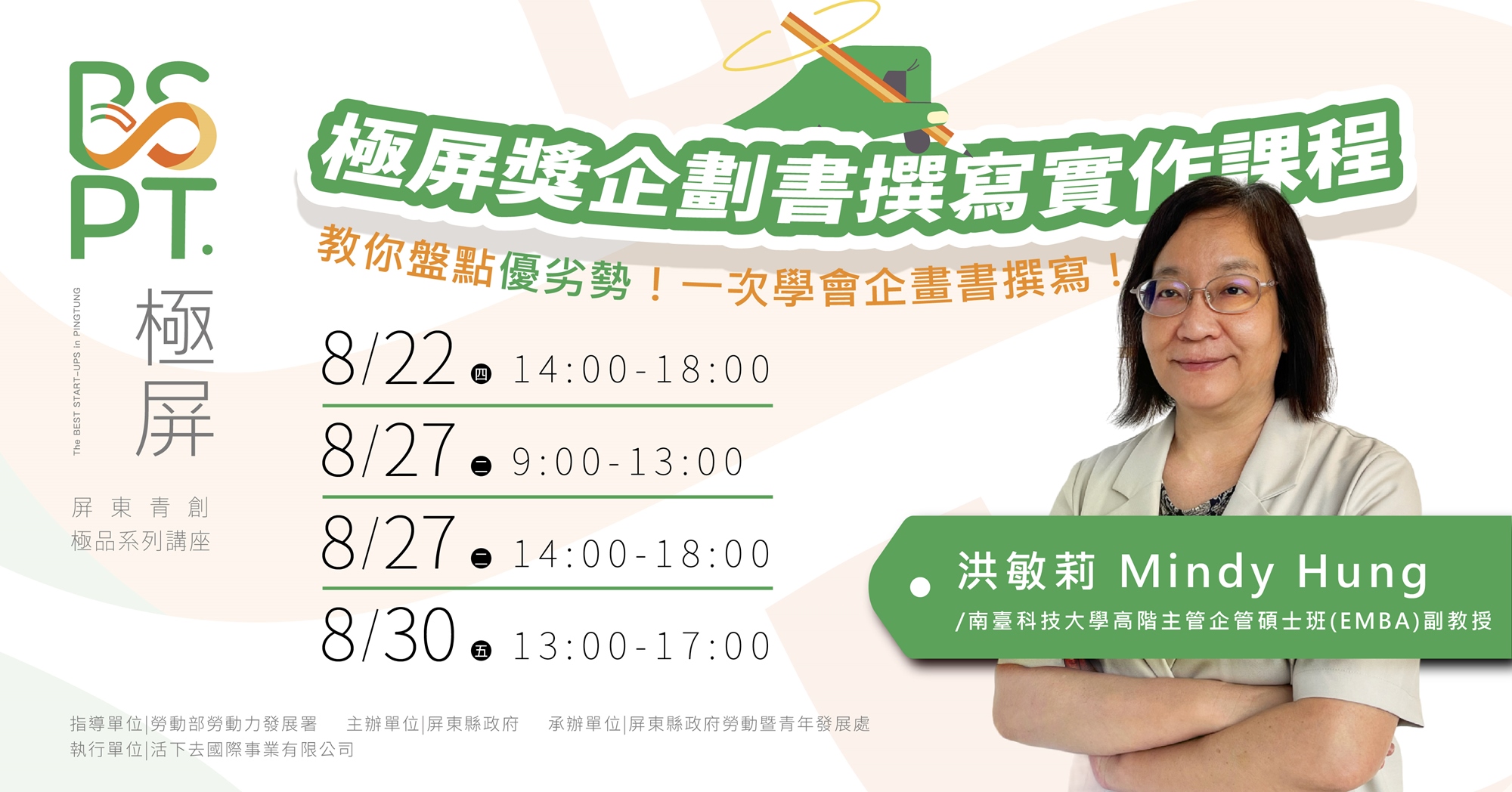 ➽ ➽ 一次學會企畫書撰寫訣竅!上完課即可參與極屏獎徵選!