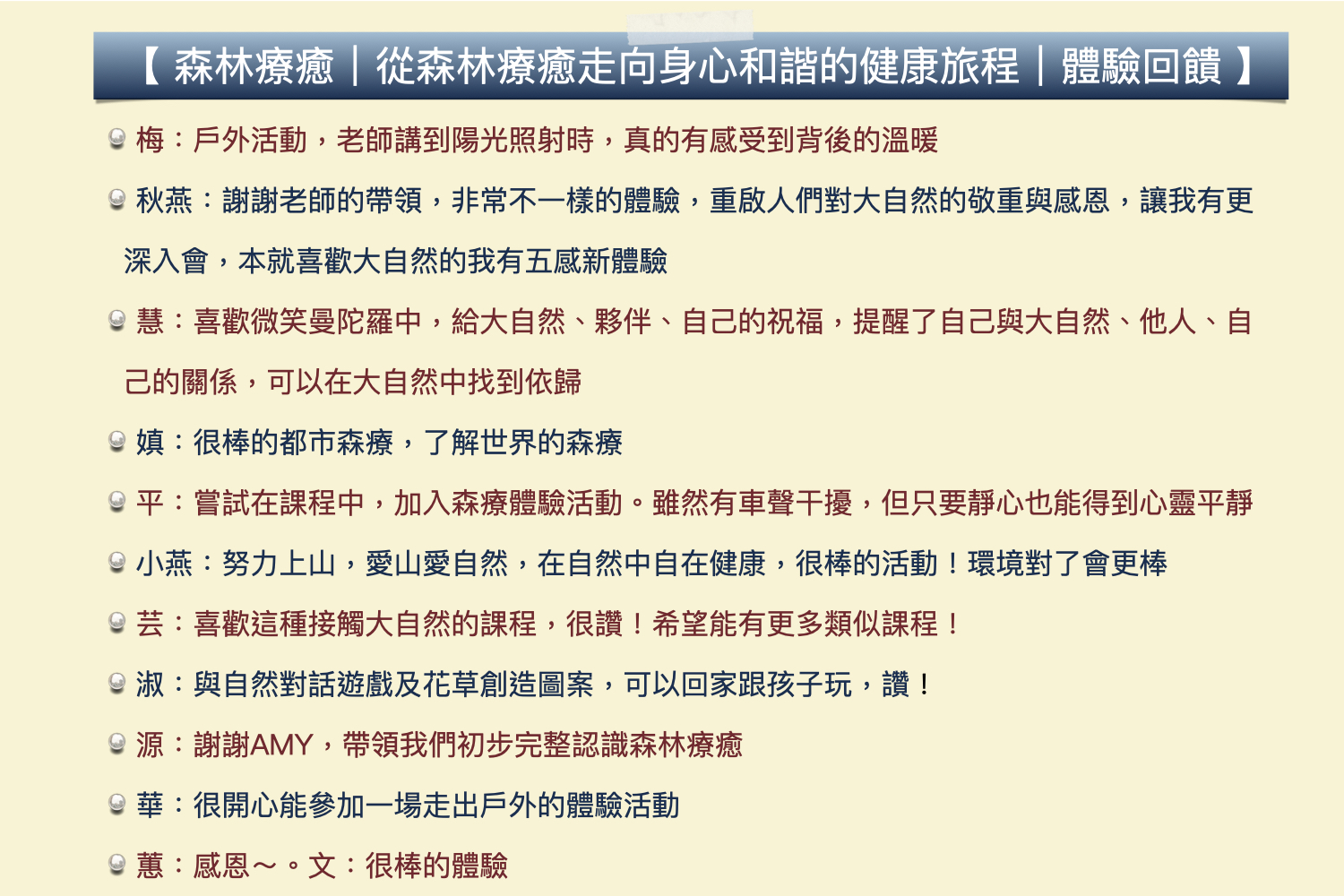 🌳 帶領:AMY WANG《森林療癒師》林業署認證第35號