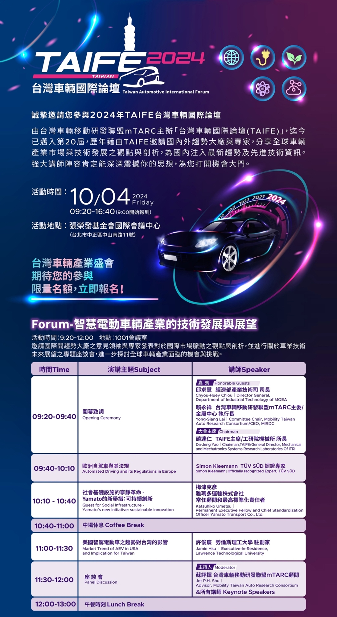 2024TAIFE台灣車輛國際論壇如期舉行,歡迎與會者一同參與本次盛會!