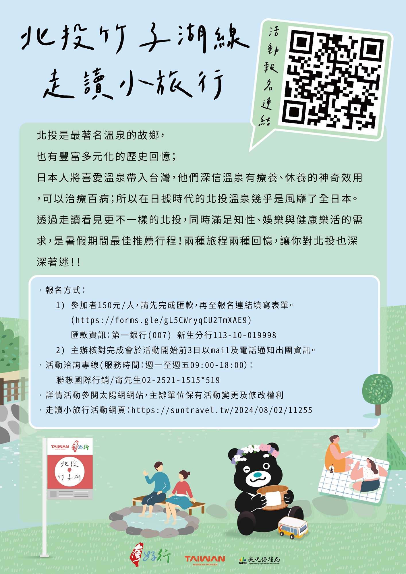 漫漫北投:9/8(日)、9/22(日)、10/6(日),時間皆為 14:00-16:30 。