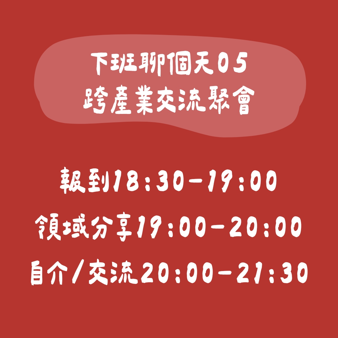 【活動流程】報到18:30-19:00、領域分享19:00-20:00、自我介紹/交流20:00-21:30