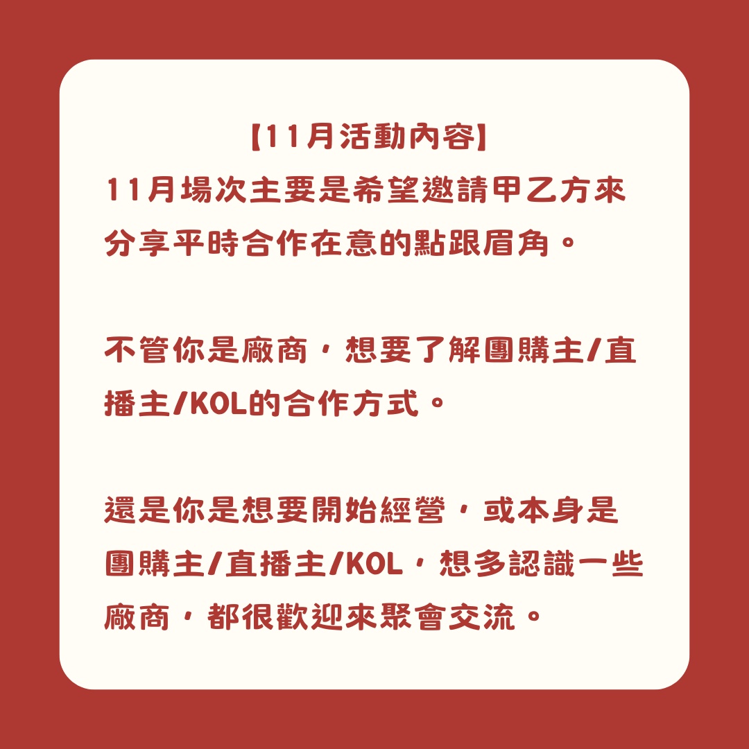放心!我們的跨產業交流聚會是溫馨舒服的,不會有讓人不舒服的太商業行為,畢竟我們自己也是這樣走過來的,這就是一個讓人感到自在又可以學到東西的地方。