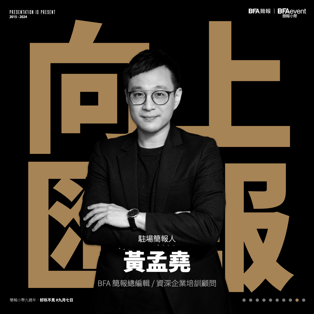 ▍駐場簡報人 | 黃孟堯 | BFA 簡報 總編輯、PFP 寶渥 資深講師