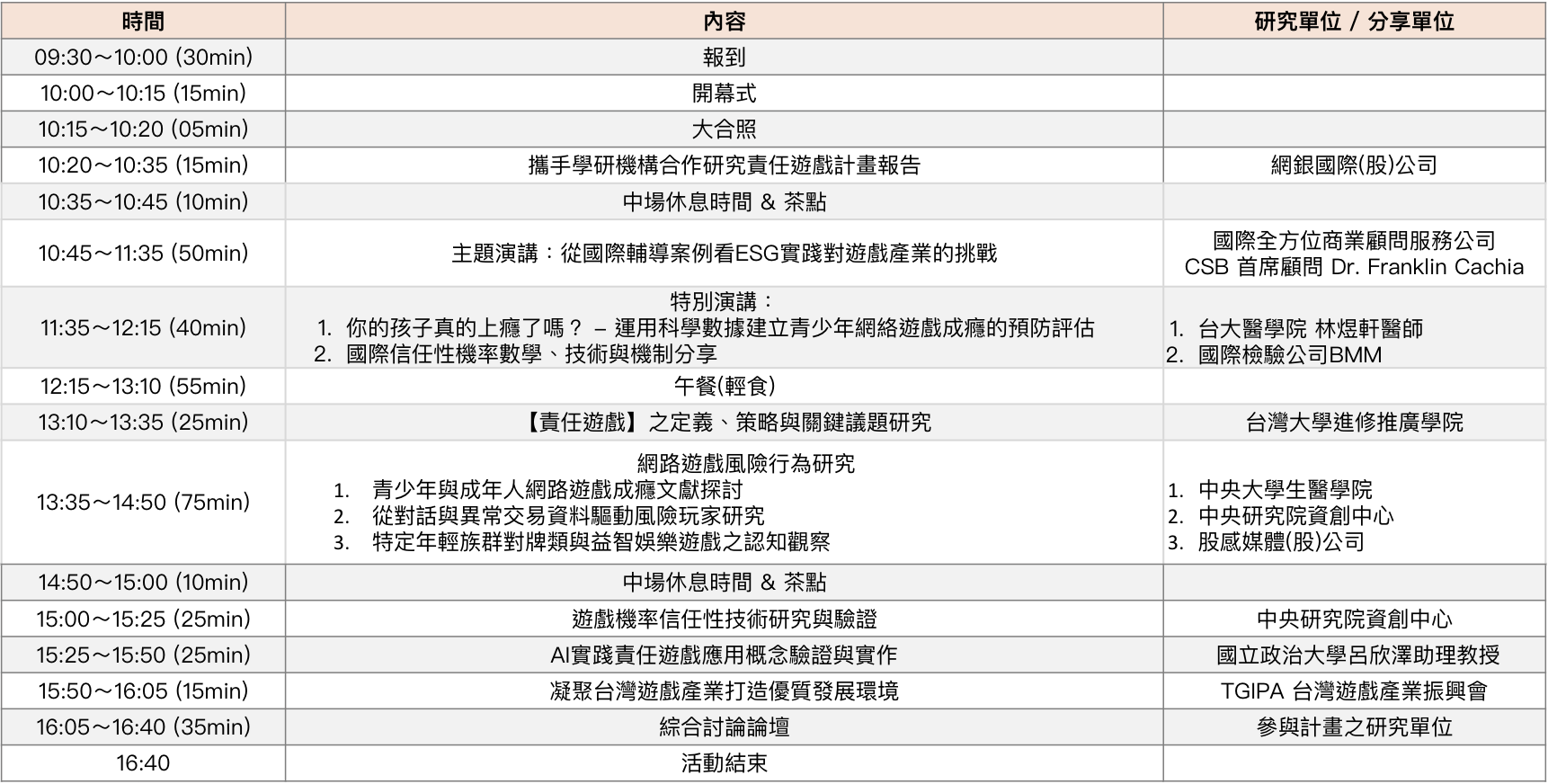 - 專家講座:來自各大學與研究機構的專家將分享關於責任遊戲的最新研究與實踐。