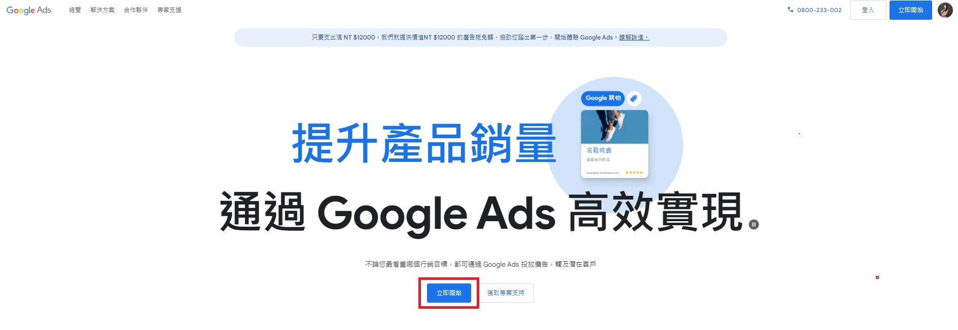 步驟一:登入Google帳號並開始申請(申請網址:https://ads.google.com/intl/zh-TW_tw/home/)