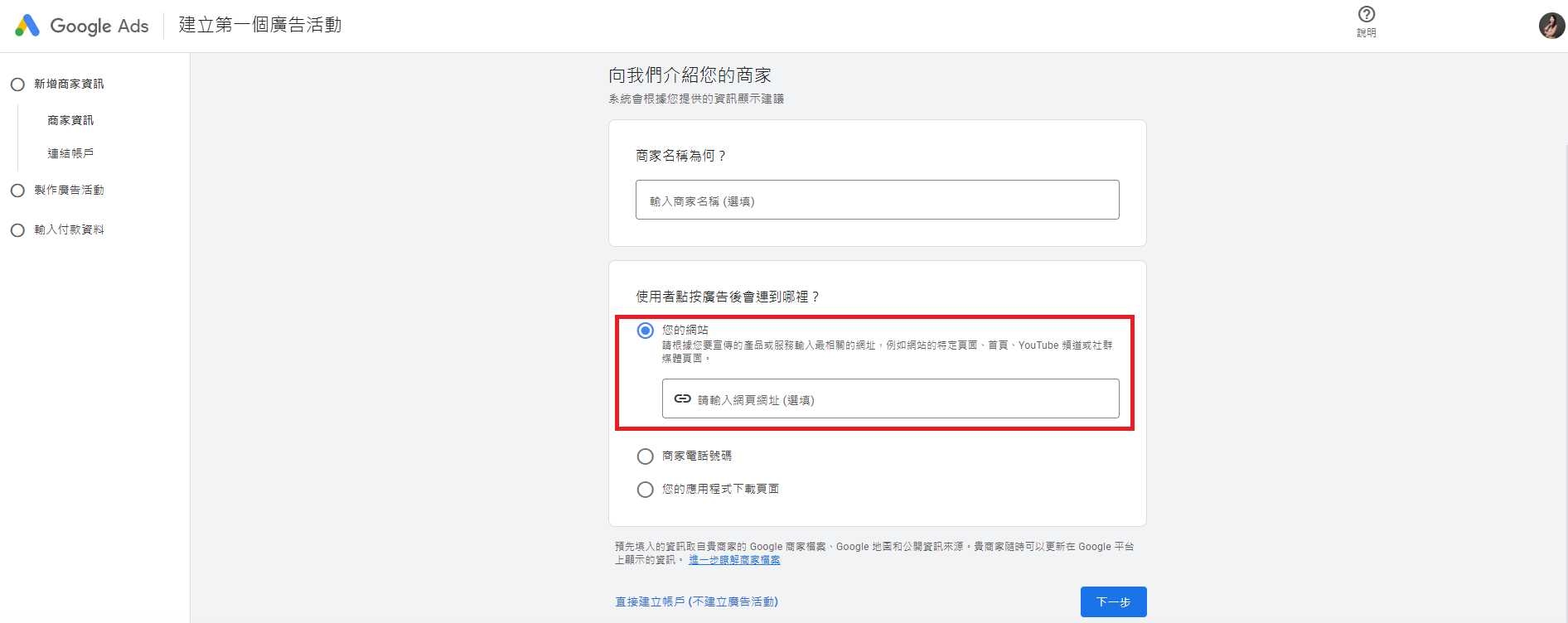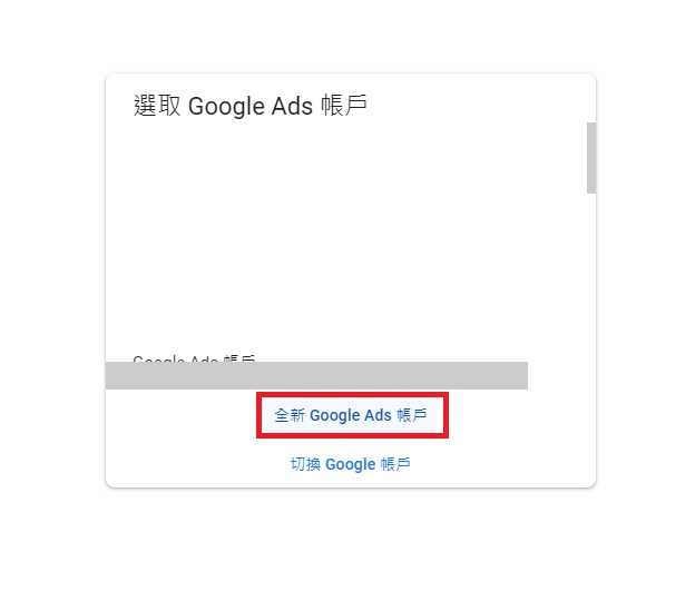步驟二:選擇建立「全新Google Ads帳戶」>建立新帳戶