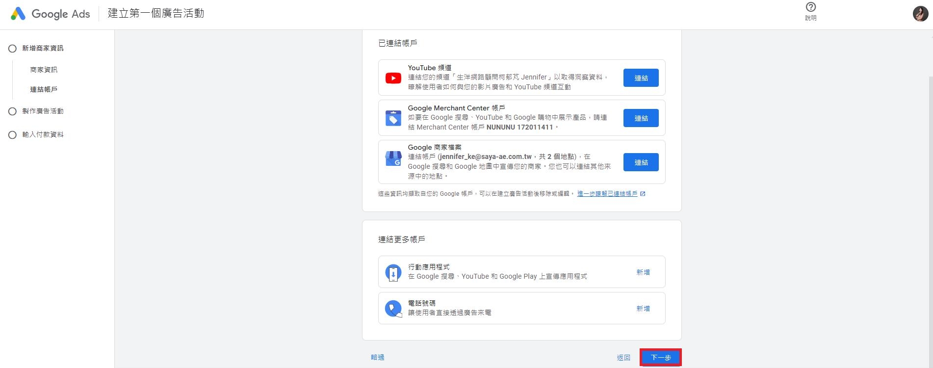 步驟五:新增連結帳戶