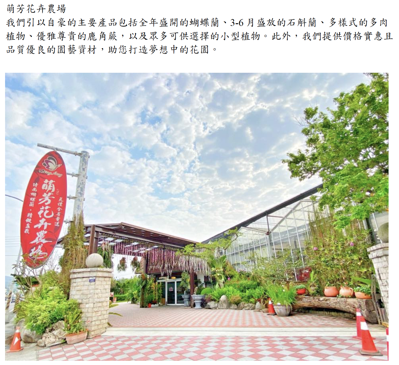 10:00-11:30 | 后里萌芳花卉農場參訪 | 萌芳花卉農場 |