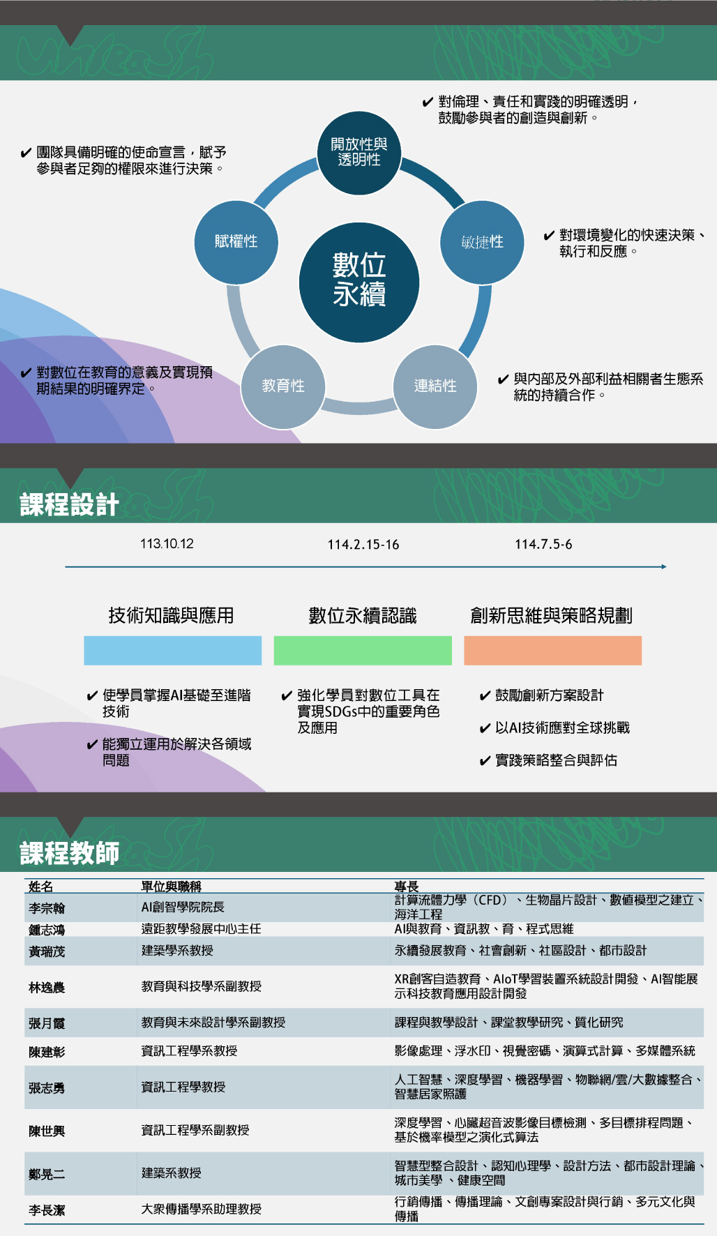 三、促進創新思維與策略規劃:鼓勵思考並提出創新的AI應用方案,以應對SDGs的各項挑戰,並學習如何在策略層面整合AI技術以支援永續發展。