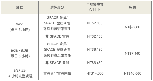 |課程價目|
