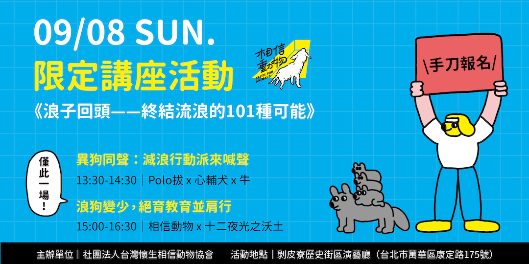 >>演講座位有限,將於8/23在相信動物粉絲專頁開放報名<<