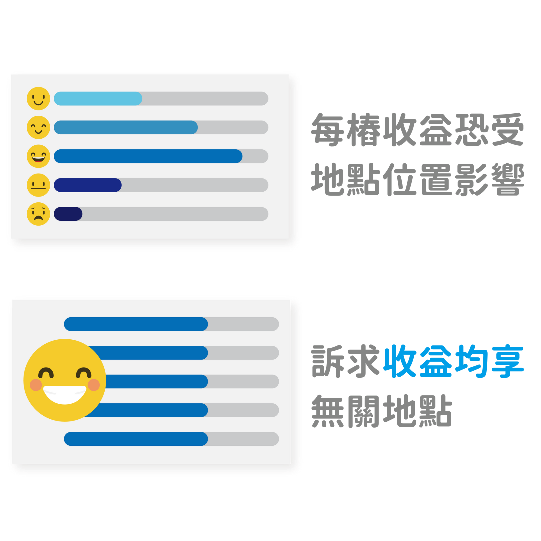 本興建計畫是基隆市總共投入多少樁數,就邀請同等數量的投資人參與興建,並且平分共同的收益,不會因為充電樁地點的受歡迎與否存在投資效益的好壞。