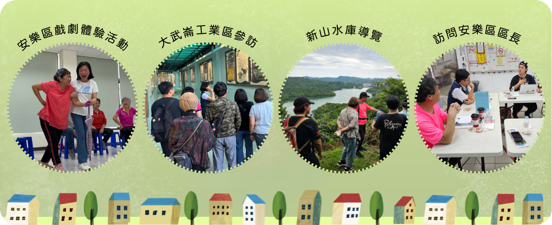 慾望劇團在過去幾年一直與基隆各社區透過不同戲劇活動進行交流,去年我們開始了「社區劇場」的計畫,以「暖暖區」為主題,募集在地居民,將田調採集到的故事配合在地人文特色,演出了《暖暖小鎮》,受到相當熱烈的迴響,也給了我們延續「社區劇場」的的信心。今年我們選定了「安樂區」,從3月開始,舉辦了三場戲劇體驗活動,招募到七位安樂區在地居民一同參與《安樂小鎮》的製作。除了請居民分享安樂區的生活故事,也帶著居民一同進行田野調查:參訪大武崙工業區、訪問工業區服務中心主任及安樂區區長,也請資深在地導覽帶我們認識新山水庫周邊,希望將安樂區轉變的脈絡與在地居民的心聲呈現在在這齣舞台劇中,讓《安樂小鎮》成為充滿在地色彩的溫暖作品。