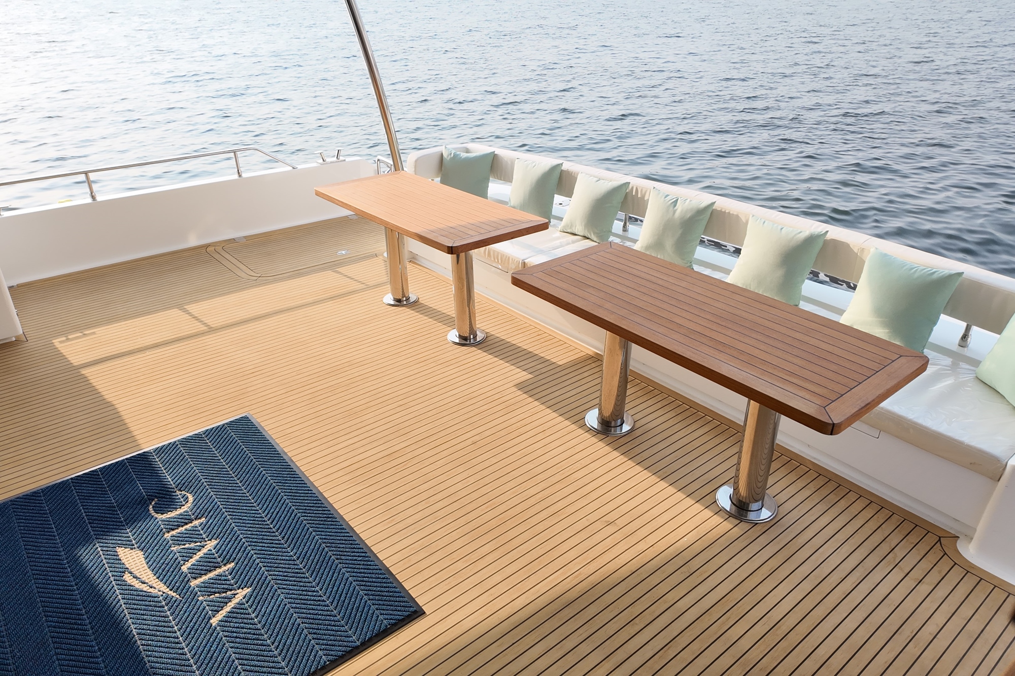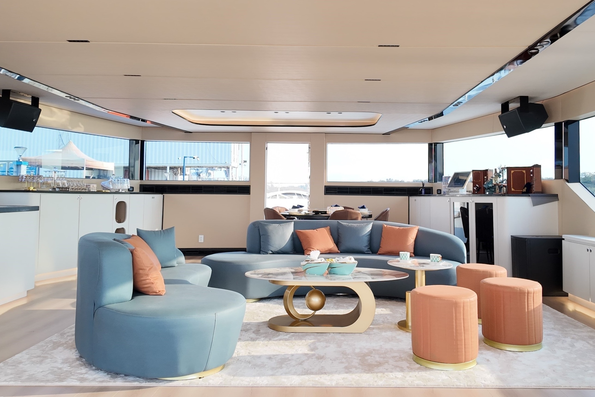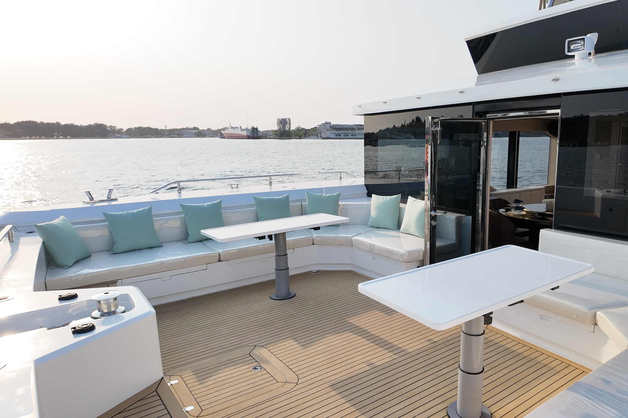 55呎雙層飛橋遊艇,擁有54平方公尺的娛樂空間,在戶外甲板觀賞海景、躍浪超享受,室內引進自然光,現代簡約感裝潢,打造舒適氛圍。奢華遊艇品味,快揪好友一起來玩玩!