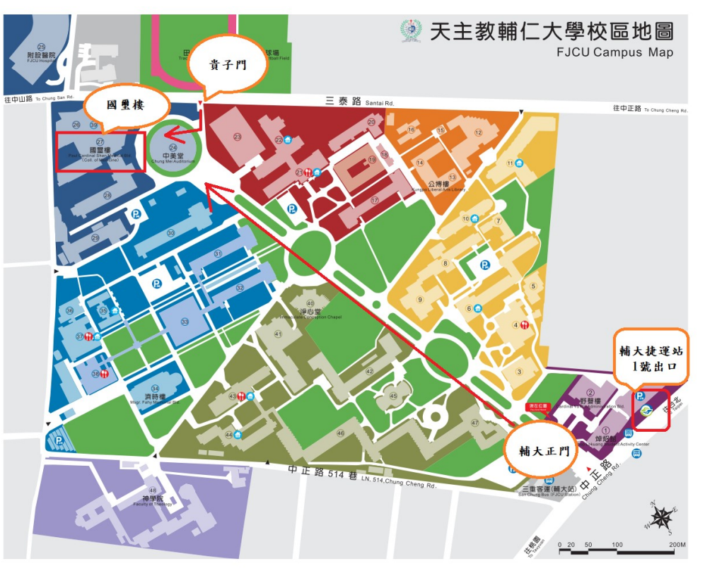 ■ 搭乘捷運(請於「捷運輔大站」1號出口出站)或公車,敬請預留約15-20 分鐘至會場。
